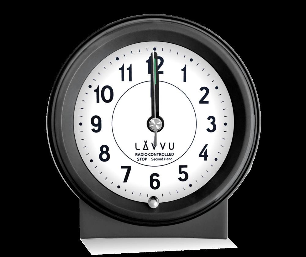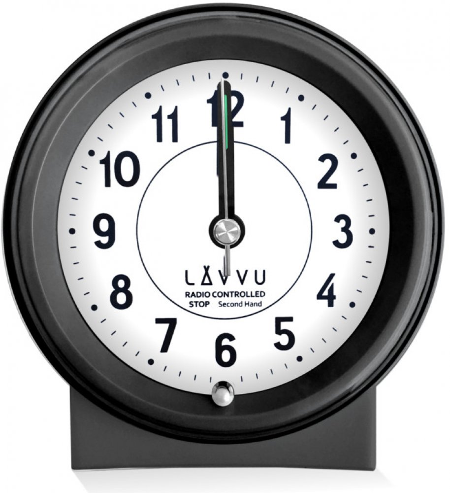 Černý rádiem řízený budík LAVVU s funkcí STOP Second Hand LAR3011 (netiká)