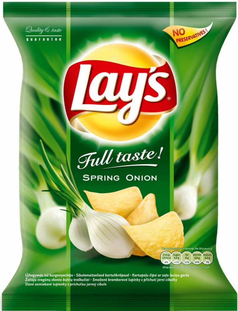 brambory, rostlinný olej (palmový olej, slunečnicový olej), ochucovací složka [sušená cibule, sušená syrovátka (z MLÉKA),LAKTÓZA (z MLÉKA), cukr, sušené odstředěné MLÉKO, zvýrazňovače chuti: glutamát sodný a sodná sůl 5'-ribonukleotidů, aroma (obsahuje MLÉČNÉ bílkoviny), sušený sýr (z MLÉKA), regulátory kyselosti: kyselina citronová a kyselina jablečná, barviva: annato a paprikový extrakt,...