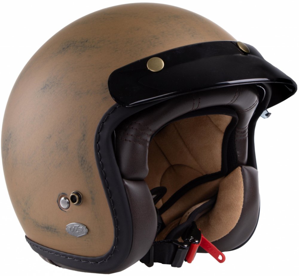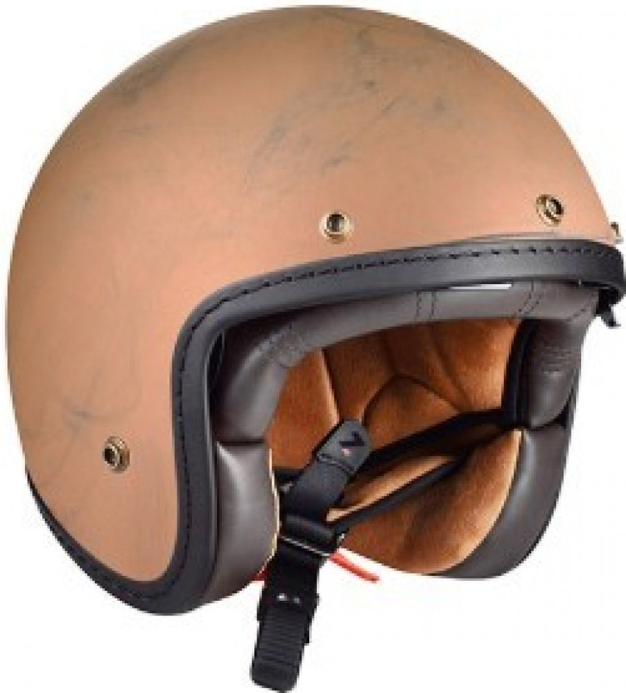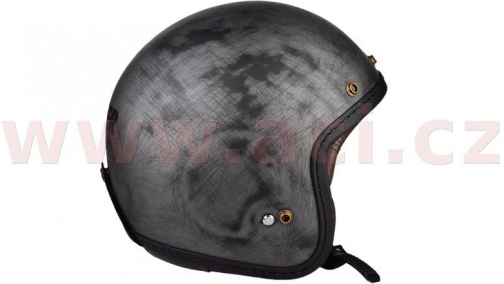 Klasická otevřená přilba. Řada Cafe Racer, každý kus je originální - ručně broušený povrch připomínající broušenou měď.