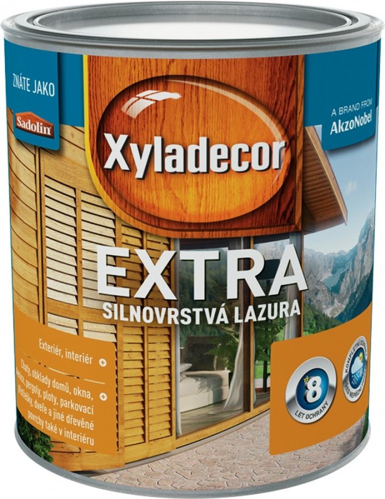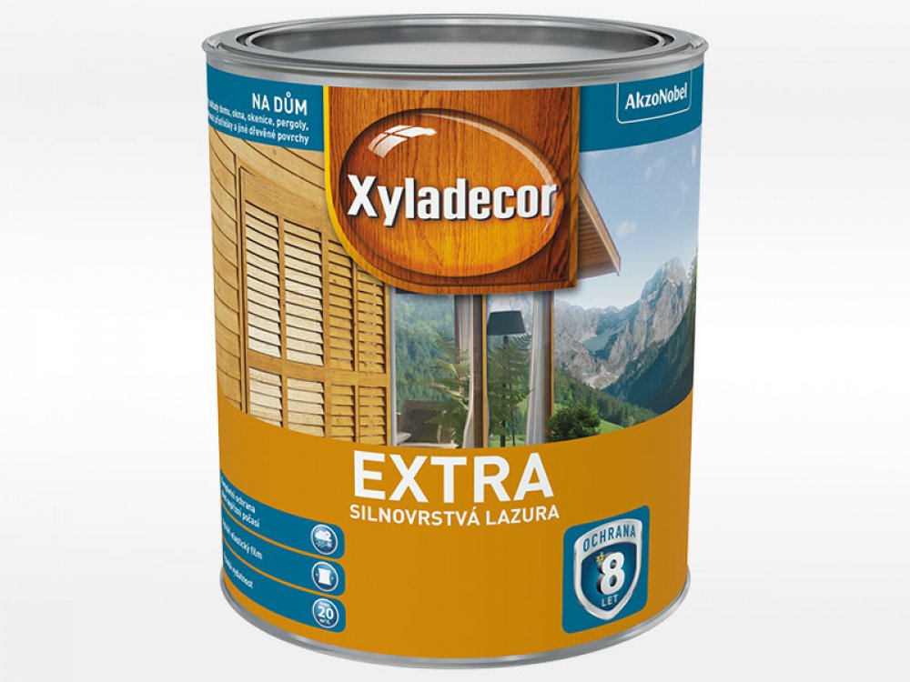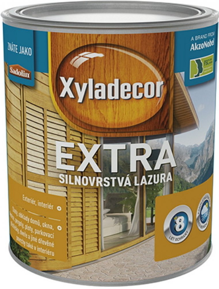 Xyladecor Extra je dekorační a ochranná silnovrstvá lazura na dřevo na rozpouštědlové bázi. Krémová konzistence usnadňuje natírání, nátěr lépe penetruje a méně zapáchá. Zvýšená přilnavost další vrstvy. Vytváří mikroporézní povrch, který chrání proti UV záření a nepřízním počasí. Vytváří silný, elegantně polomatný film na povrchu dřeva. Je určen pro venkovní dřevěné povrchy, jako jsou okna, dveře, ...