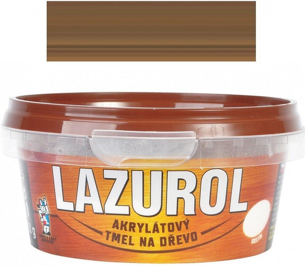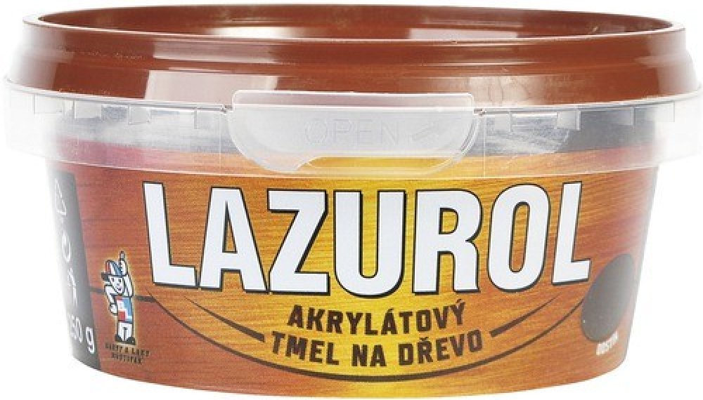 LAZUROL akrylátový tmel na dřevo je vysoce krémovitý tmel k opravám prasklin, kazů, rýh ve dřevě, dřevotřískách a dřevovláknitých deskách. Tmel lze použít pro aplikaci jak v interiéru, tak i v exteriéru a také k případnému vyspravení zdiva, sádrokartonu atd. Aplikace od 0,5 mm - 4 mm. V exteriéru doporučujeme ihned opatřit nátěrem. Tmel je brousitelný a přetíratelný. Návod k použití Pracovní plochy musí být čisté, zbaveny starých nátěrů a mastnoty. Tmel nanášíme pomocí špachtle nebo stěrky. Po vytvrzení tmel brousíme brusným papírem a dále opracováváme jako běžné dřevo. Tmelení provádíme od 0,5 mm do 3 mm v jedné vrstvě.