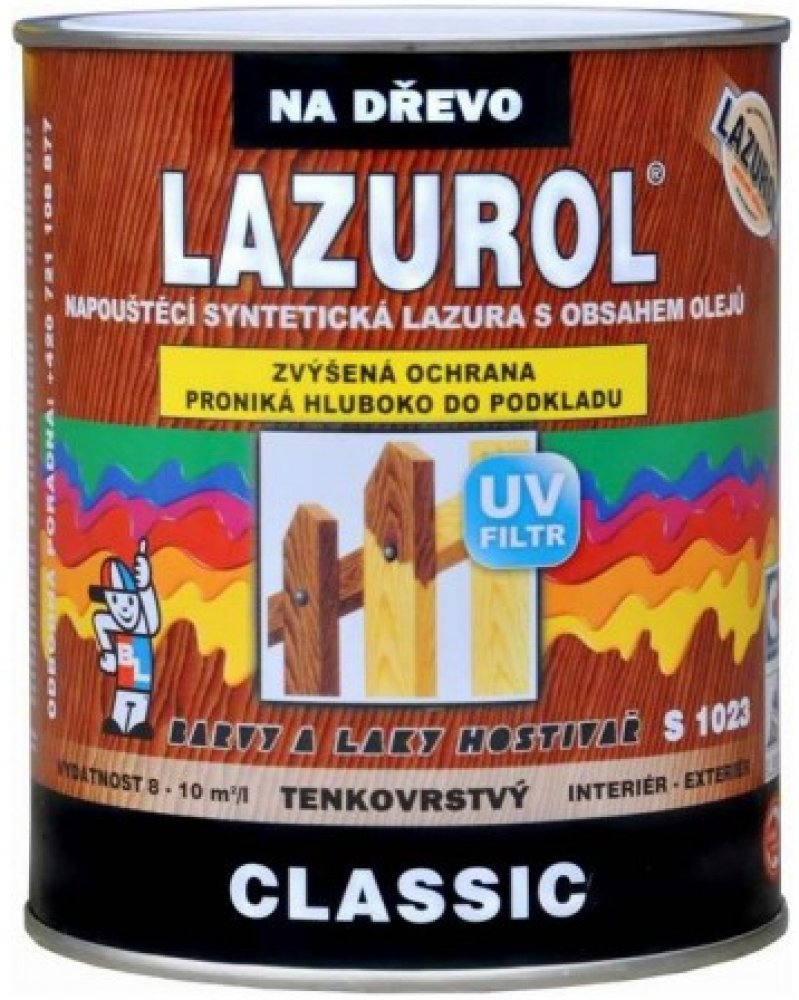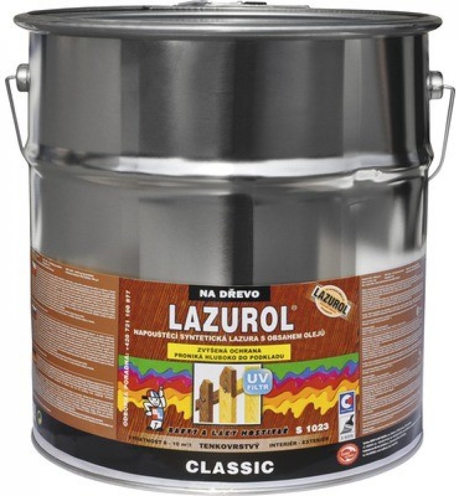 Popis produktu:Lazurol s1023 je určen k ochranným lazurovacím nátěrům měkkého i tvrdého dřeva, vystaveného povětrnostním vlivům i k nátěrům v interiérech. Chrání dřevo před účinky UV záření. Obsahuje přírodní olej. Hluboce proniká do struktury dřeva, zvýrazňuje jeho přirozenou kresbu a tím poskytuje vysoce efektní nátěry. Vyznačuje se velmi snadnou obnovitelností starého nátěru.