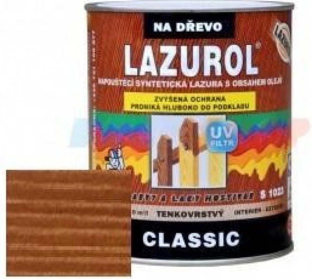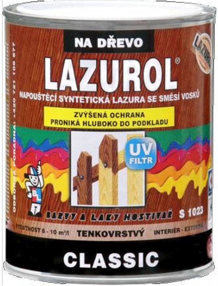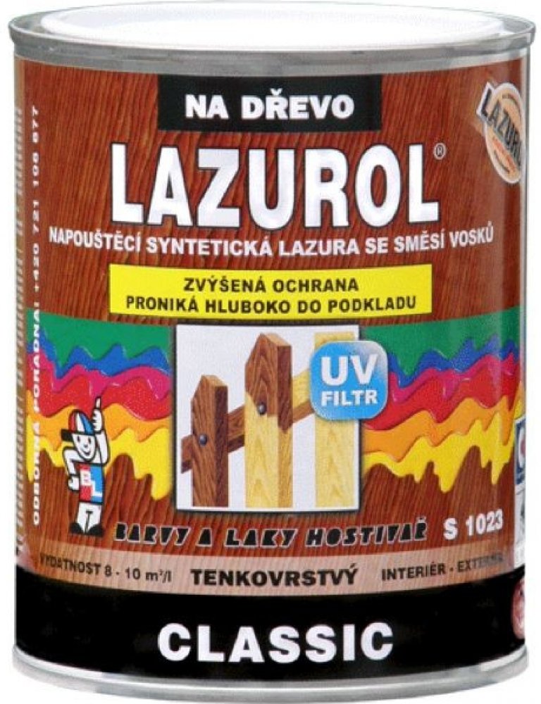 Popis produktu:Lazurol s1023 je určen k ochranným lazurovacím nátěrům měkkého i tvrdého dřeva, vystaveného povětrnostním vlivům i k nátěrům v interiérech. Chrání dřevo před účinky UV záření. Obsahuje přírodní olej. Hluboce proniká do struktury dřeva, zvýrazňuje jeho přirozenou kresbu a tím poskytuje vysoce efektní nátěry. Vyznačuje se velmi snadnou obnovitelností starého nátěru.