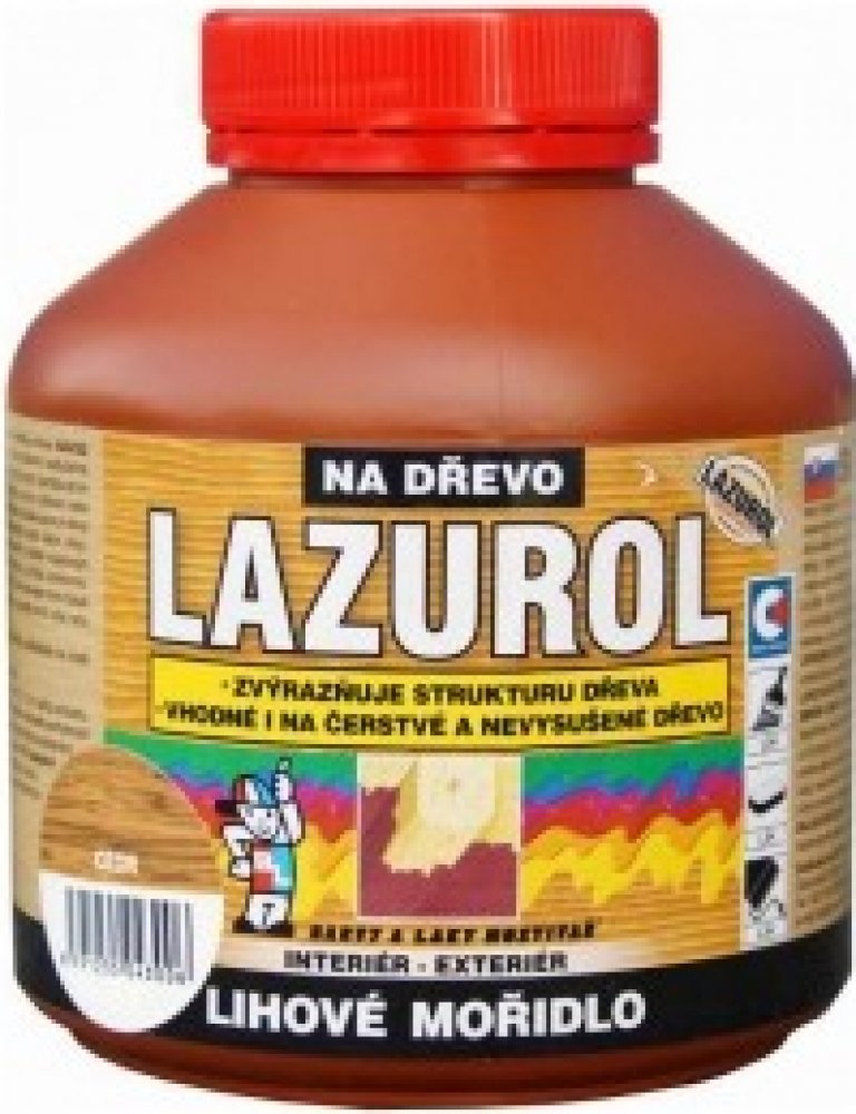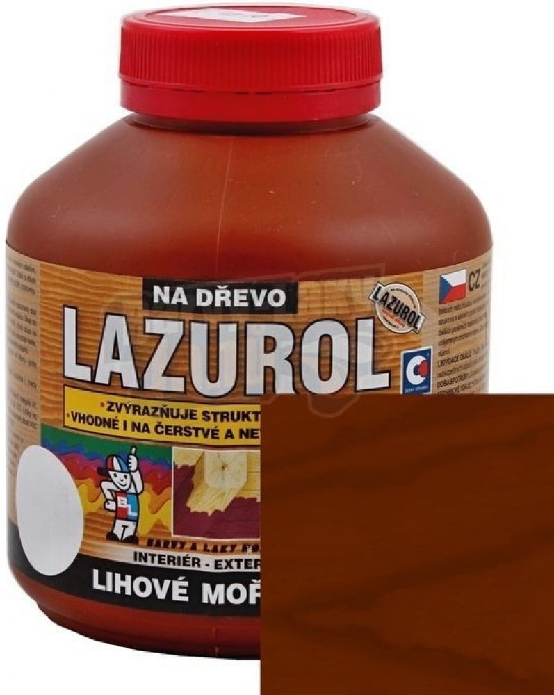 Lazurol Lihové mořidlo je barevný koncentrát na lihové bázi. Je určen k moření dřeva a všech porézních materiálů (např. beton, cihly). Zvýrazňuje strukturu dřeva, proniká hluboko do podkladu. Mořidlo (bez následné povrchové úpravy) je vhodné i k aplikaci na čerstvé a nevysušené dřevo.