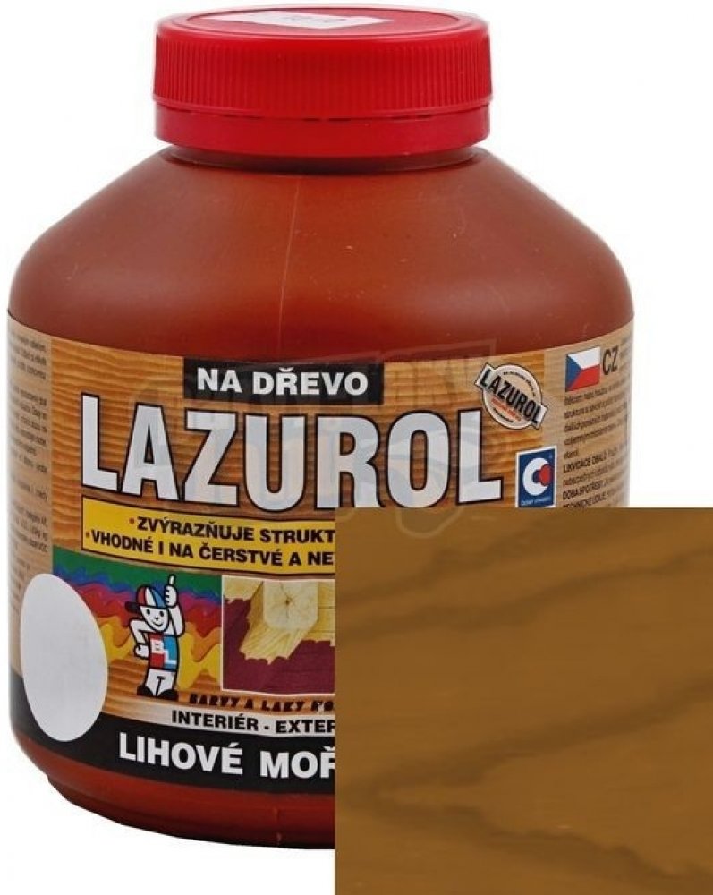 LAZUROL Lihové mořidlo je tradiční přípravek určený k moření dřevěných povrchů, který na rozdíl od barevných laků nevytváří na povrchu vrstvu, ale vsakuje se přímo do vláken. Díky lihové bázi velmi rychle zasychá a nezvedá vlákna dřeva tolik jako vodou ředitelná mořidla. Je vynikající volbou pro truhláře i restaurátory, kteří chtějí změnit odstín dřeva, ale nechtějí zakrýt jeho přirozenou krásu.