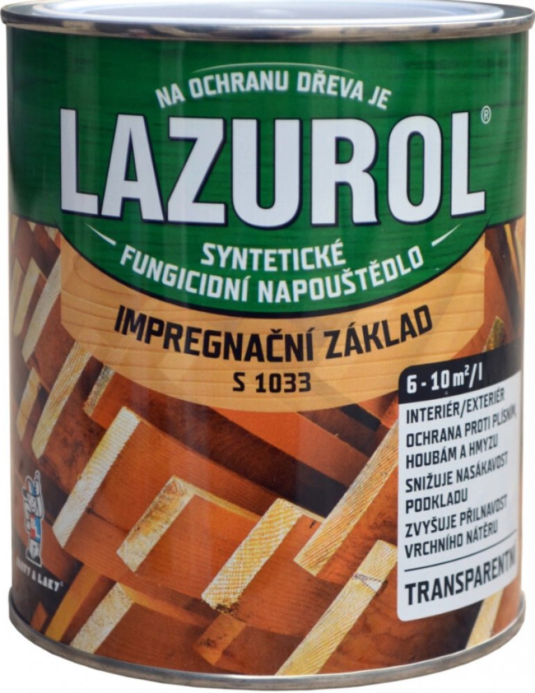 Lazurol S1033 je určen k preventivní chemické povrchové ochraně dřeva a materiálů na jeho bázi před napadením plísněmi, dřevozbarvujícími i dřevokaznými houbami a dřevokazným hmyzem. Používá se pod olejové, syntetické nebo vodouředitelné nátěrové hmoty. Dřevo napuštěné Lazurolem s1033 může být zabudováno v interiérech (třídy ohrožení 1 a 2 dle ČSN EN 335-1, 2, 3) a exteriérech (třída ohrožen...