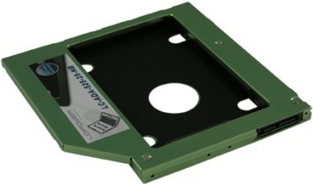5,25" drive bay rack for an additional 2,5" hard disk drive (HDD/SSD) in a notebook.