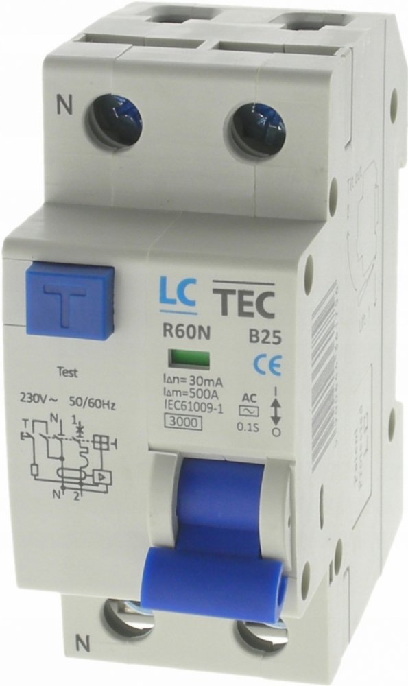 LC proudový chránič 2P B 25A 30mA AC