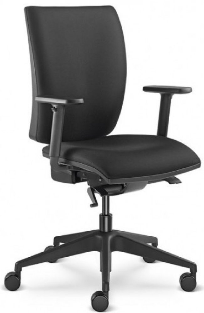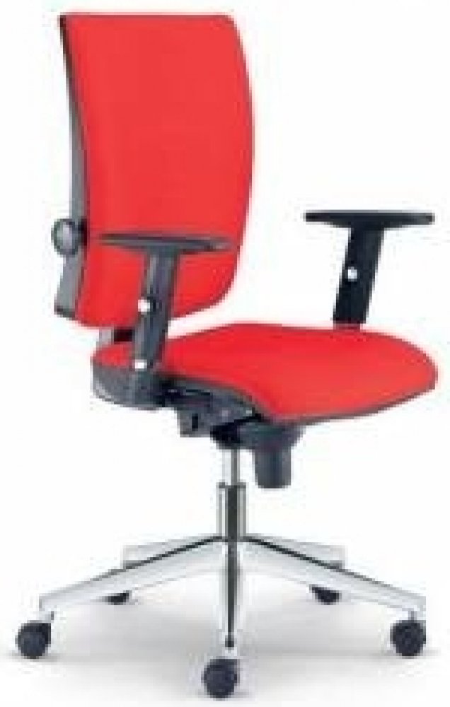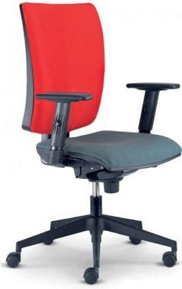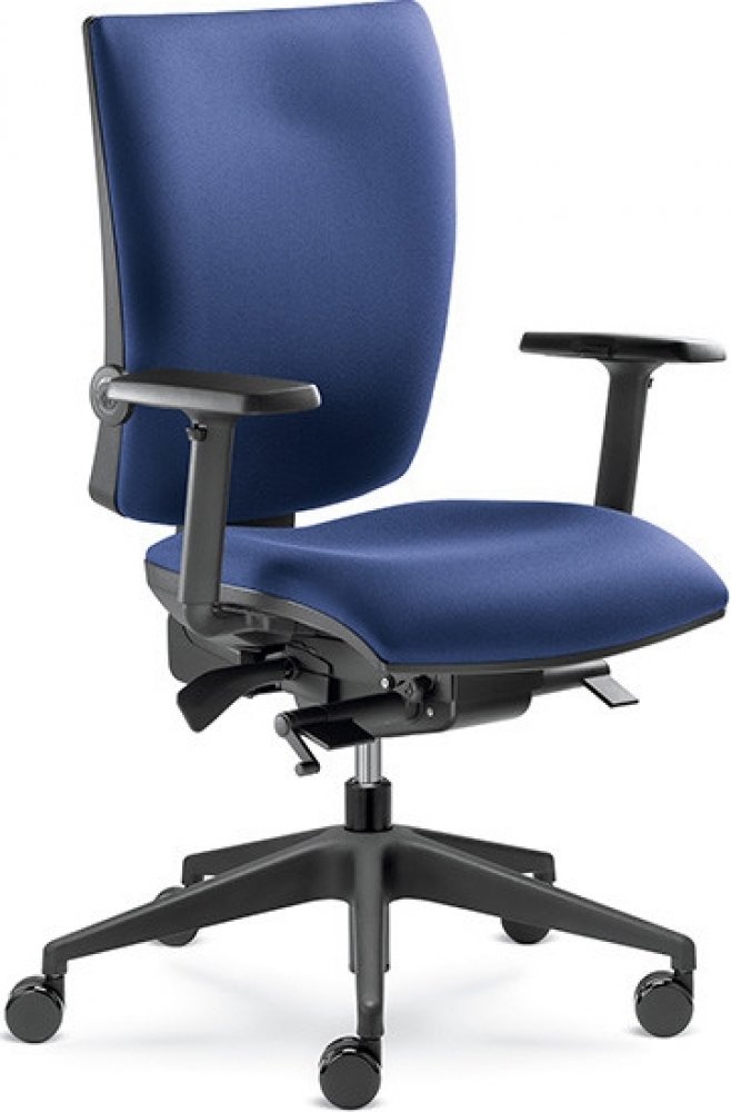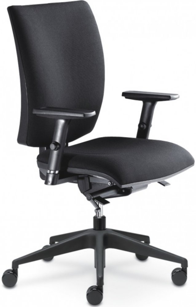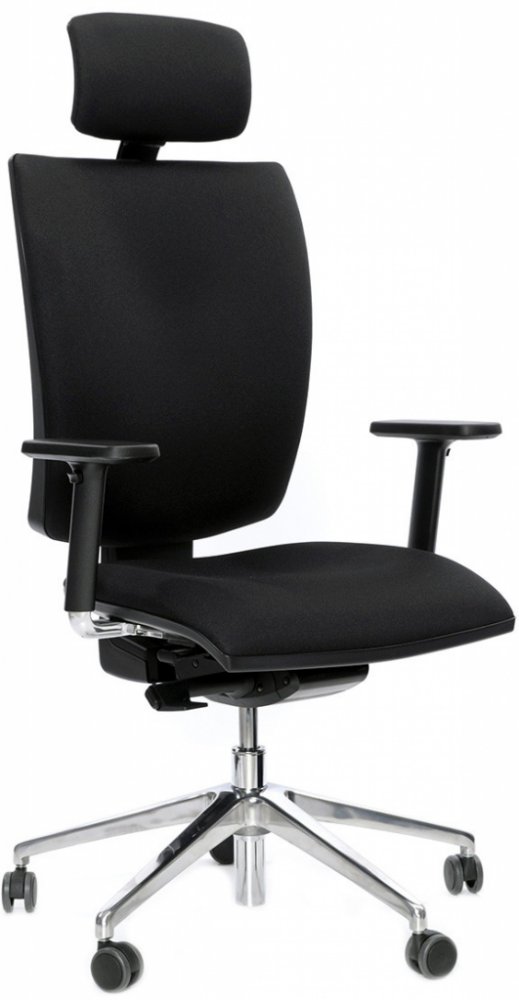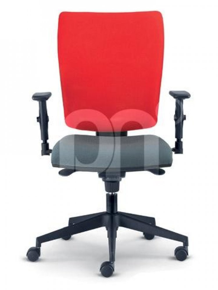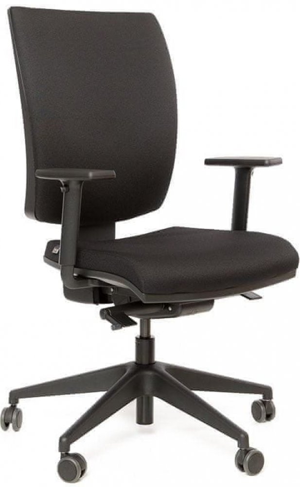 Kancelářská židle vyšší kategorie se synchronním mechanismem SYS a systémem výškového nastavení opěráku UP-DOWN. Základní provedení plastových částí je v černé barvě. Čalounění je látkové. Cena je bez područek.