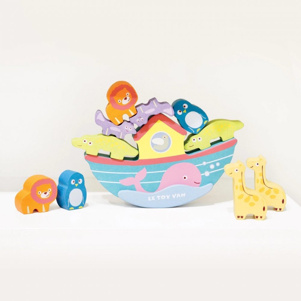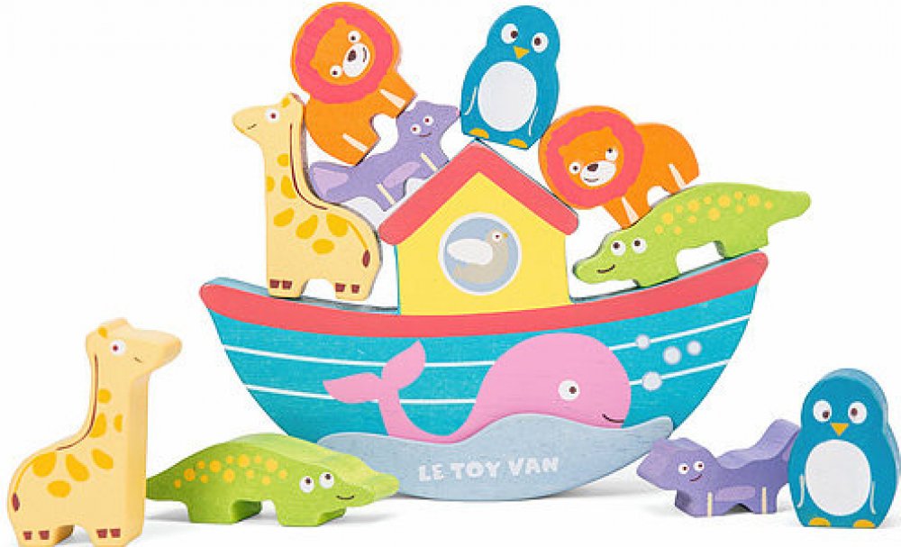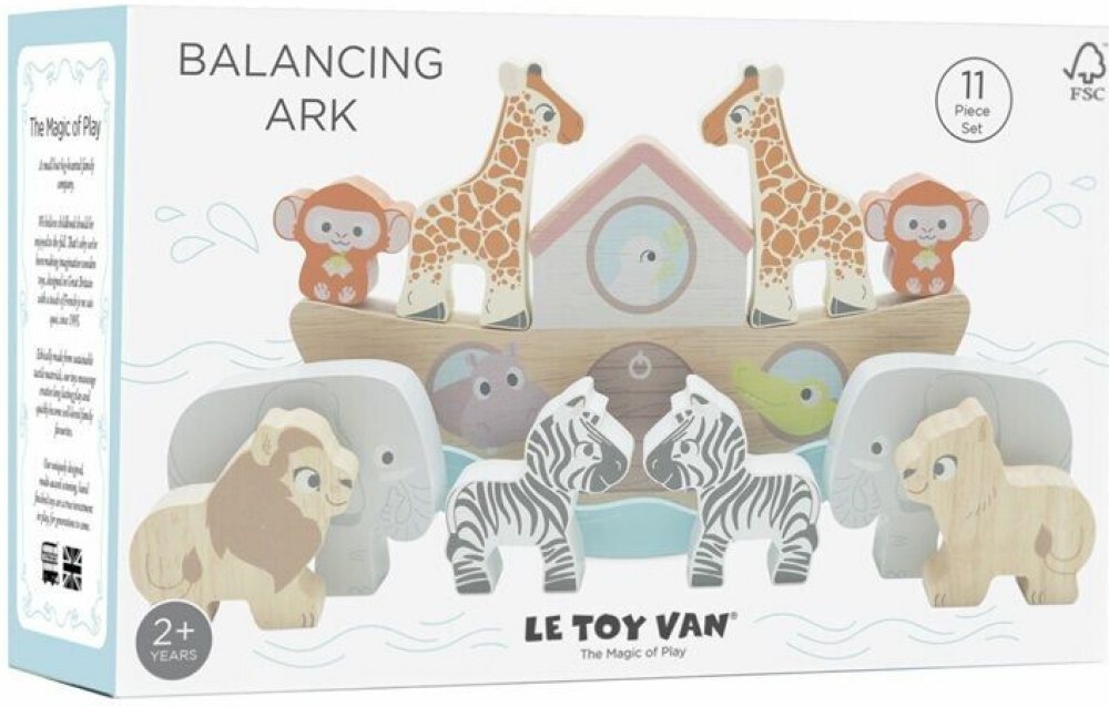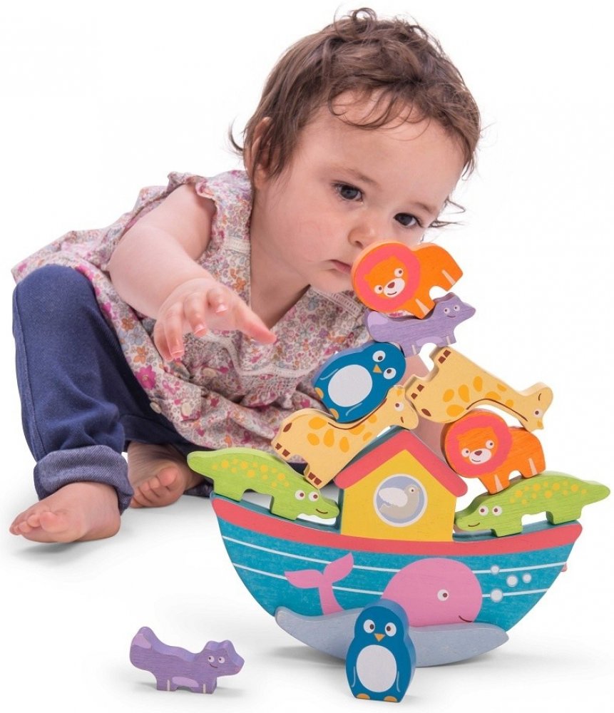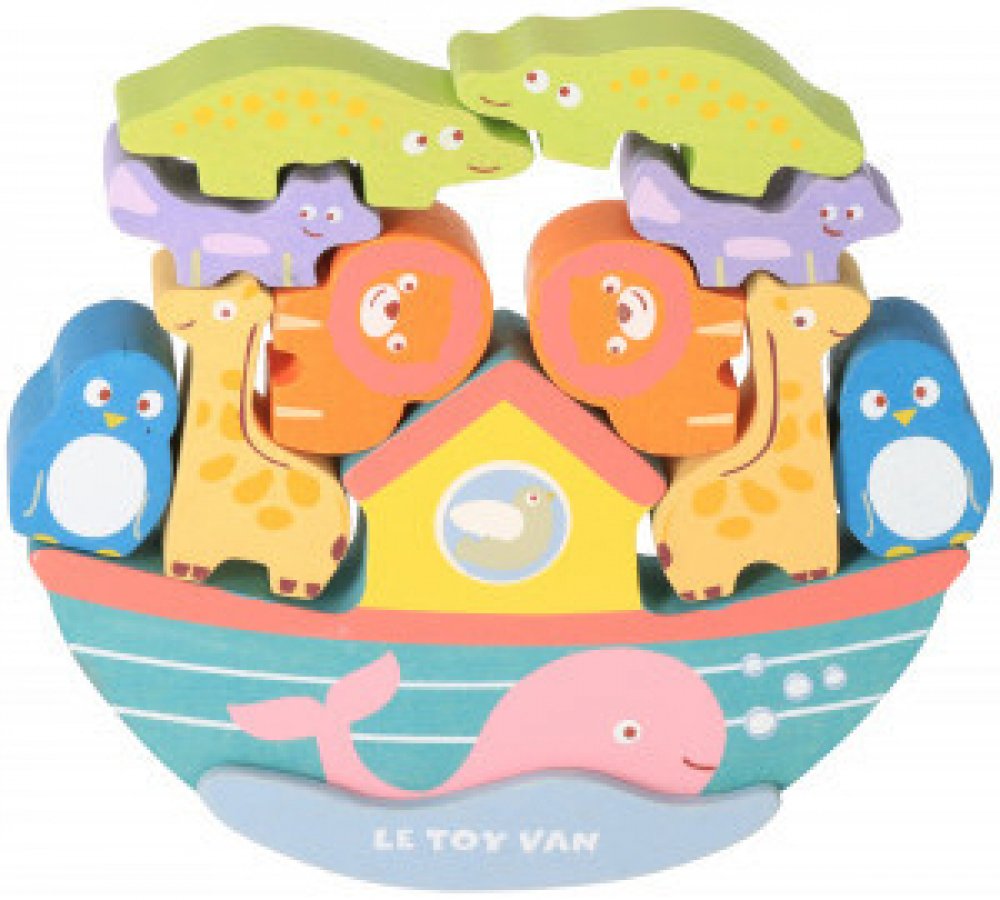 Krásná dřevěná archa s 10 dřevěnými zvířaty, která se houpe. Děti nadchne, budou hledat 5 párů zvířat, které k sobě pasují. Jak vysoko dokážou děti jednotlivé dílky naskládat než se balanční archa rozhoupe?