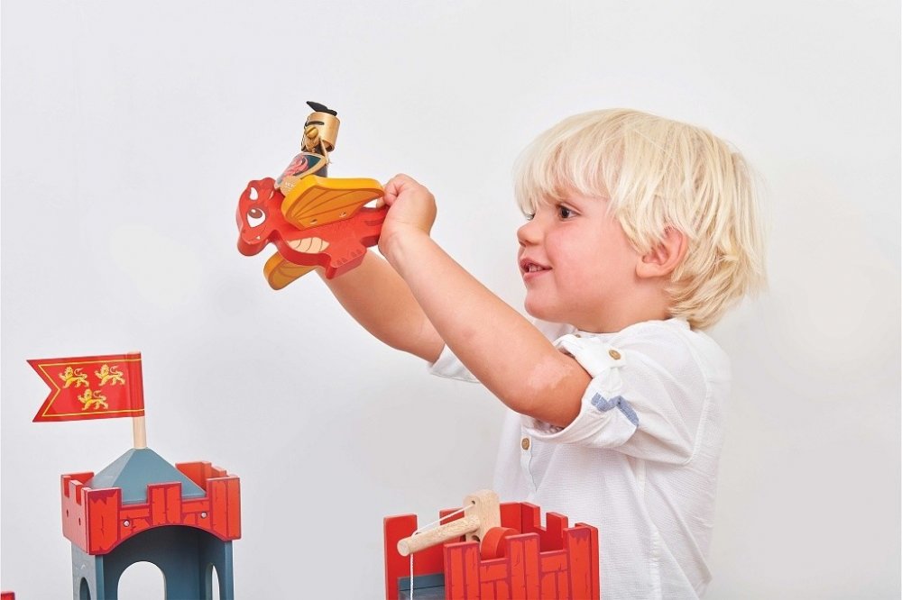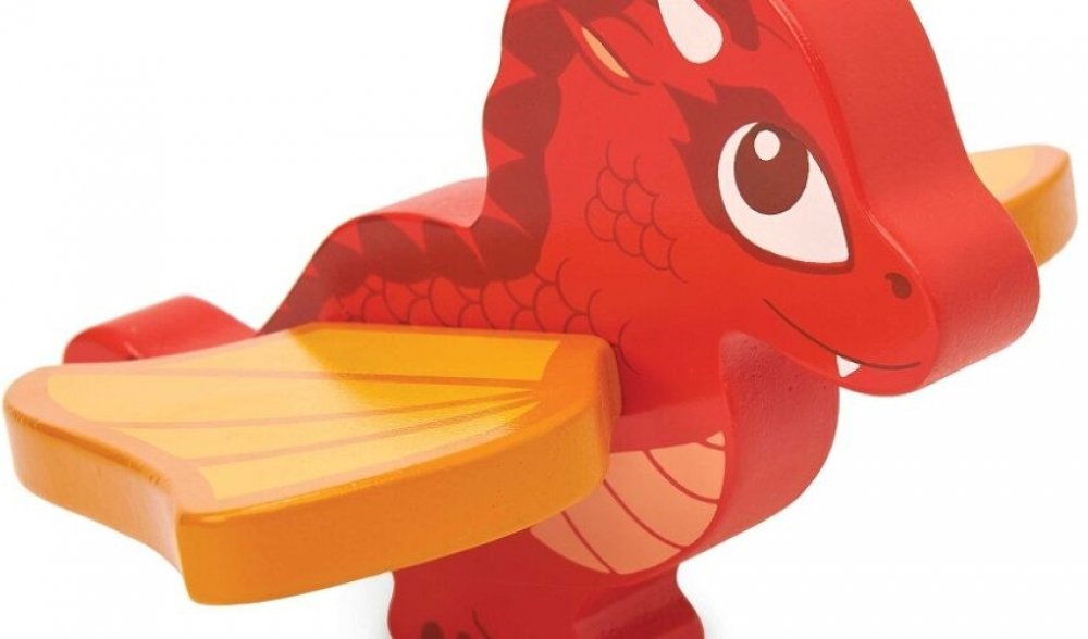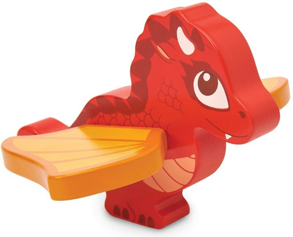 Dráček z pevného dřeva s červenými šupinami. Má oranžová křídla, díky kterým se může vznést – křídla jsou ohebná. Perfektně se hodí do Le Toy Van hradů.