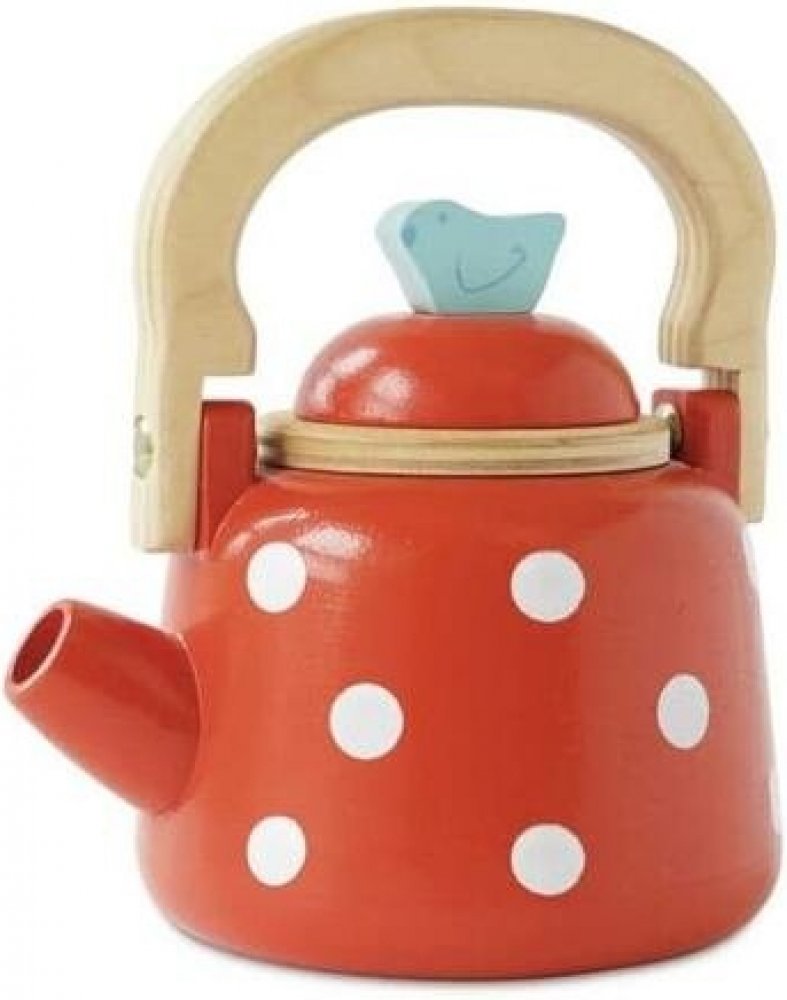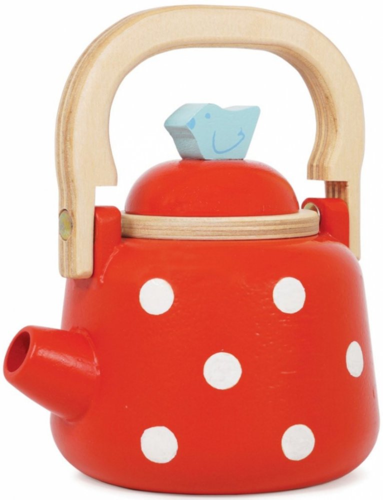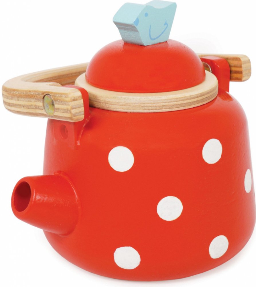 Je libo čaj o páté? Puntíkovaná dřevěná konev s oddělitelnou pokličkou a krásnou ručkou z překližky. Perfektně se hodí k čajovému setu TV276 a čajovému vozíku TV324.