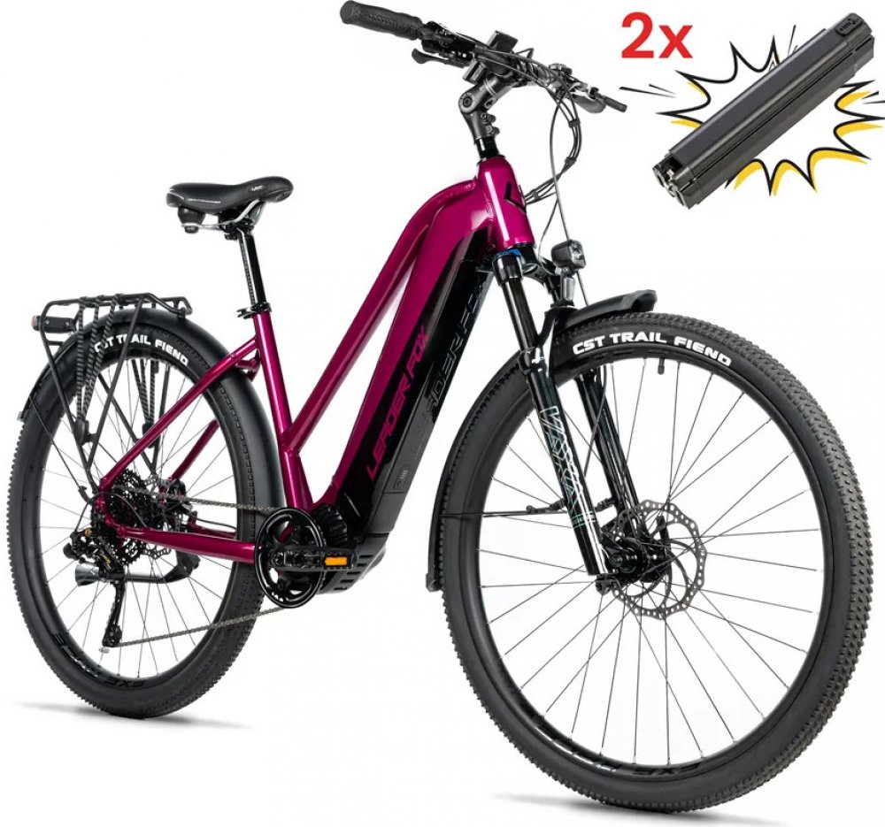 Trekingové elektrokolo LEADER FOX BARNET dámské 28", model 2025-3, baterie 20Ah/720Wh, barva raspberry