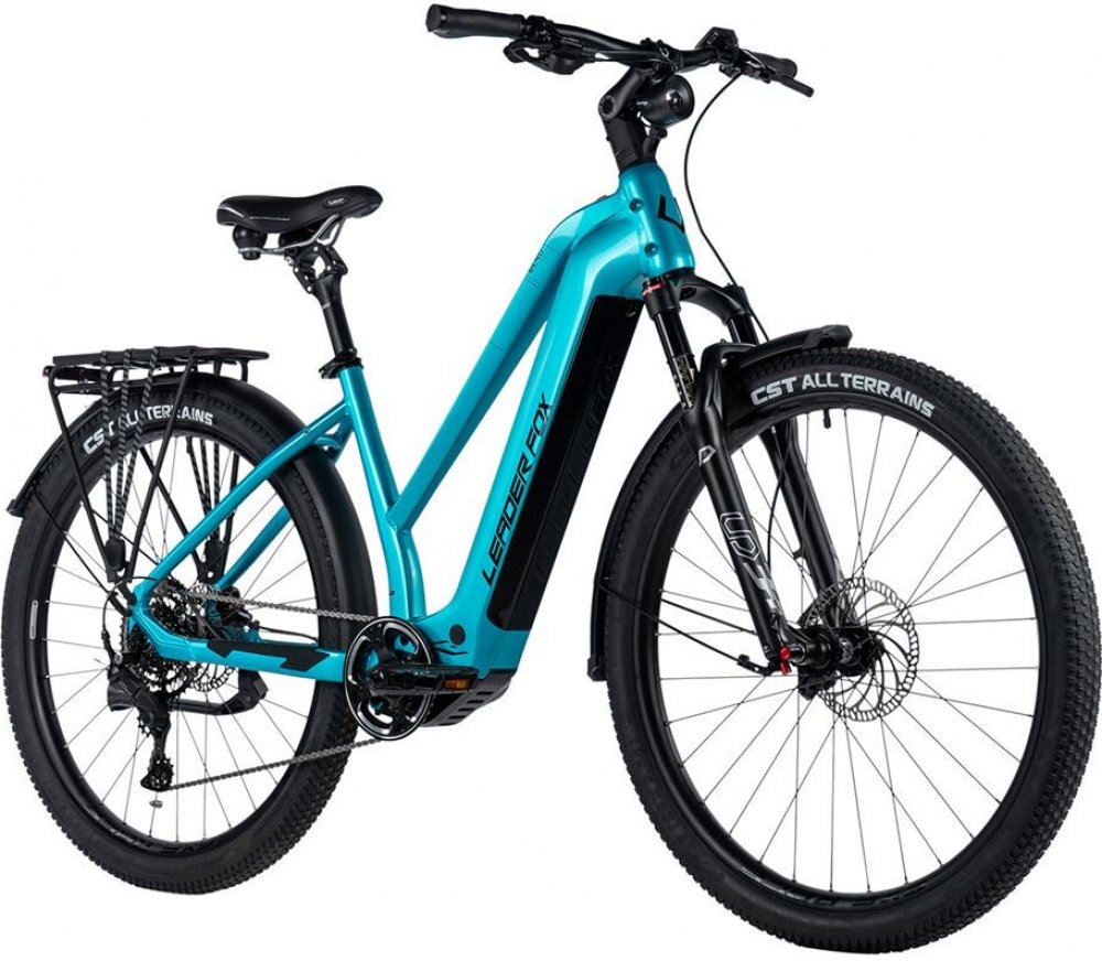 Leader Fox trekking/cross dámská 2024 150 km středové integrované na rámu Bafang odpružená přední vidlice kotoučové hliníkové Bafang M510 95 Nm