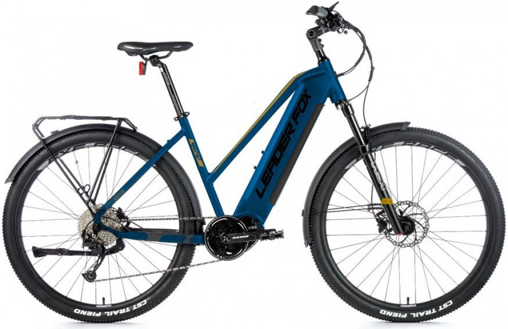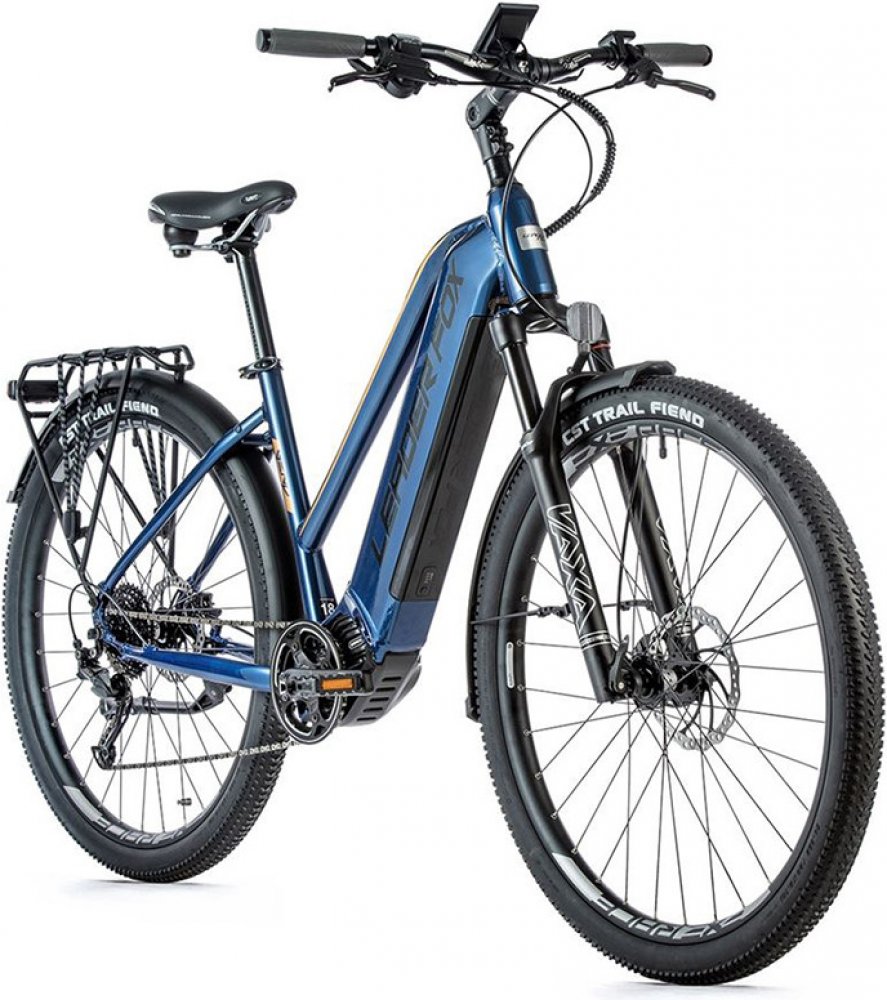 Leader Fox trekking/cross dámská 2021 150 km středové integrované na rámu Bafang odpružená přední vidlice 100 mm kotoučové hliníkové Bafang M500 95 Nm