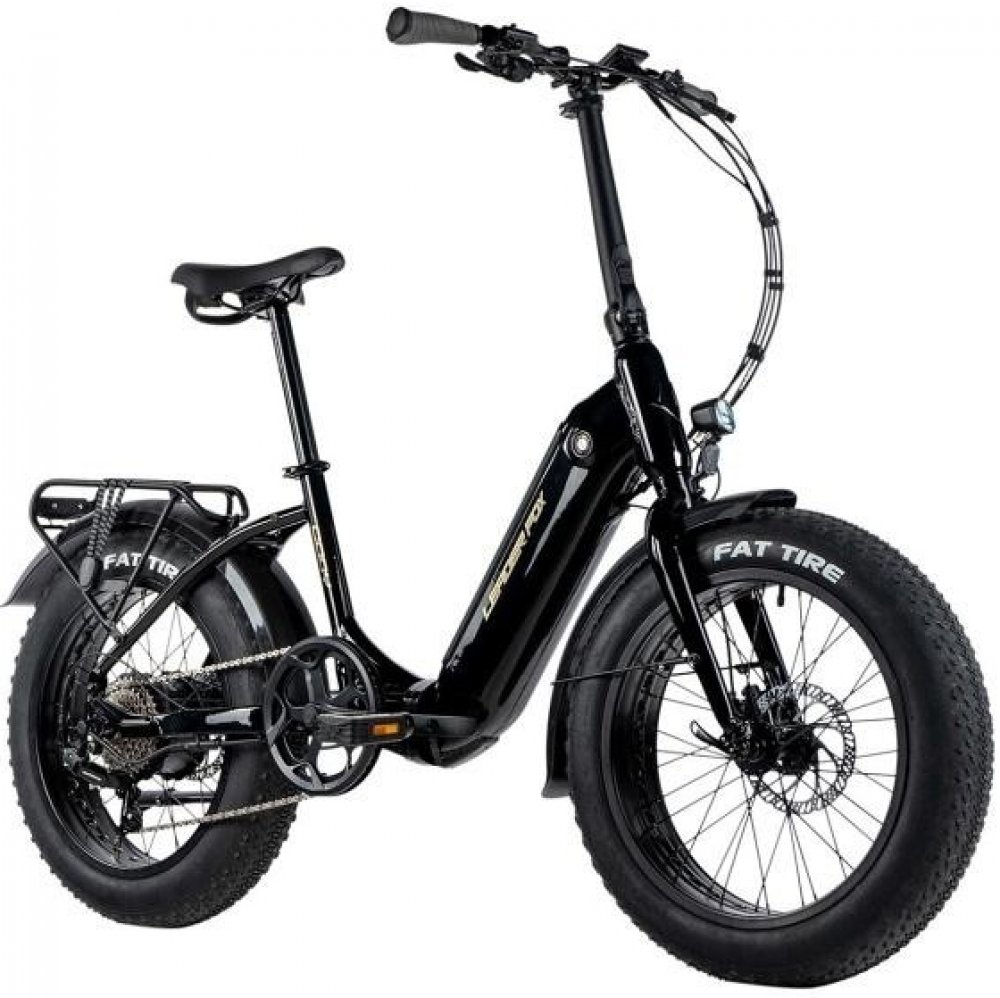 Skládací FAT Bike Leader Fox Cody 20" 2024 se zadním elektromotorem, hliníkovým rámem, elegantním designem, pevnou přední vidlicí a kotoučovými brzdami.
