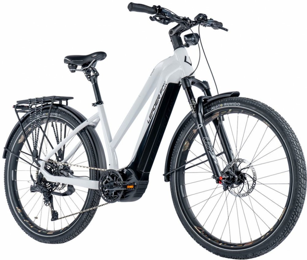 Leader Fox trekking/cross dámská 2024 100 km středové na rámu Panasonic odpružená přední vidlice 120 mm kotoučové brzdě hliníkové Panasonic GX Ultimate 95 Nm