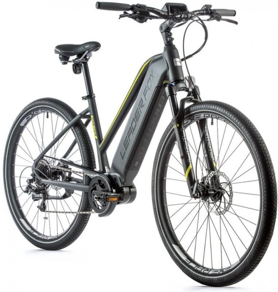 Leader Fox trekking/cross pánská 2021 110 km středové integrované na rámu Bafang odpružená přední vidlice 65 mm kotoučové hliníkové Bafang M300 80 Nm