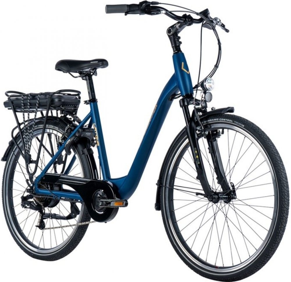 Městské elektrokolo Leader Fox LATONA 26" s hliníkovým rámem, odpruženou přední vidlicí, V-brzdami. Vaše stylové elektrokolo do města.