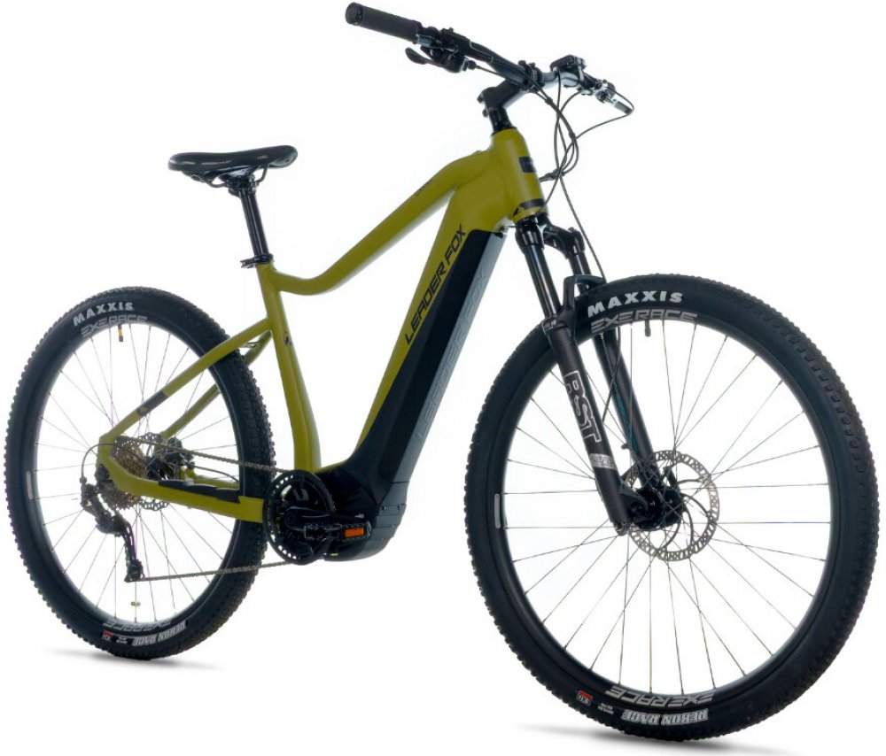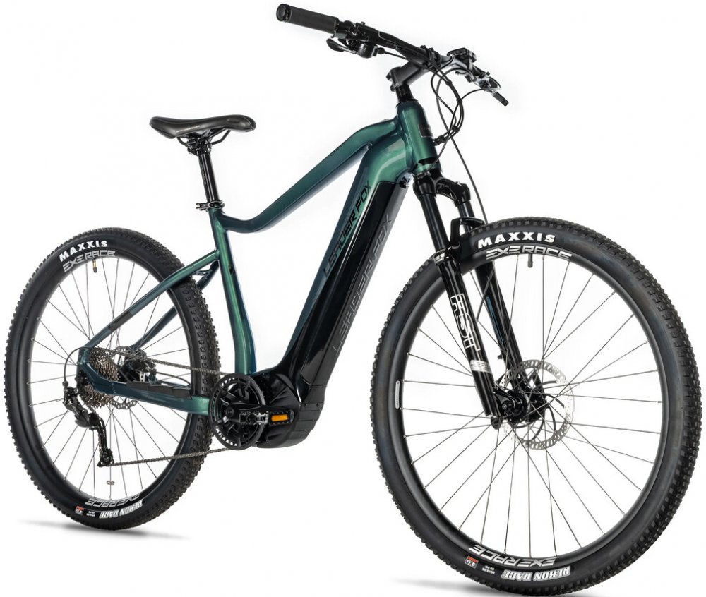 Leader Fox horská 2023 150 km středové integrované na rámu Panasonic odpružená přední vidlice 100 mm kotoučové hliníkové 95 Nm
