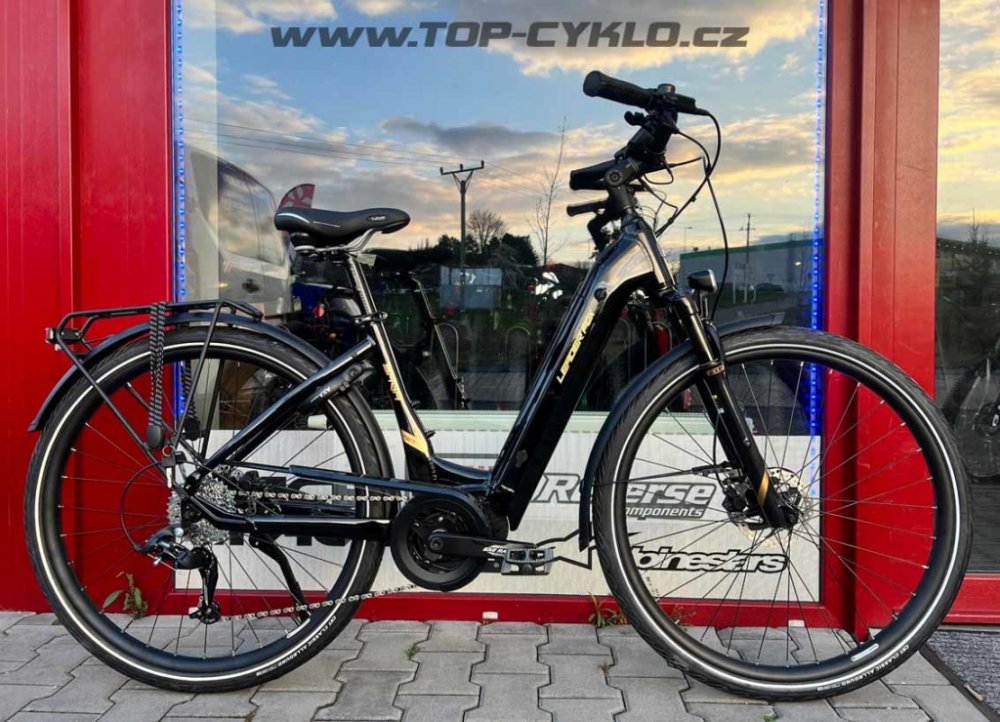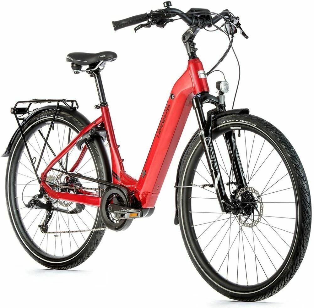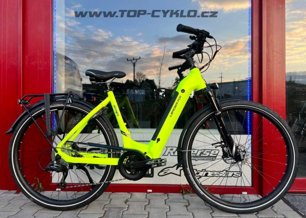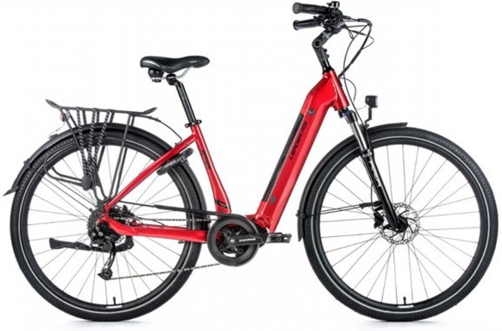Leader Fox městská dámská 2021 100 km středové integrované na rámu Bafang odpružená přední vidlice 65 mm kotoučové hliníkové Bafang M300 80 Nm