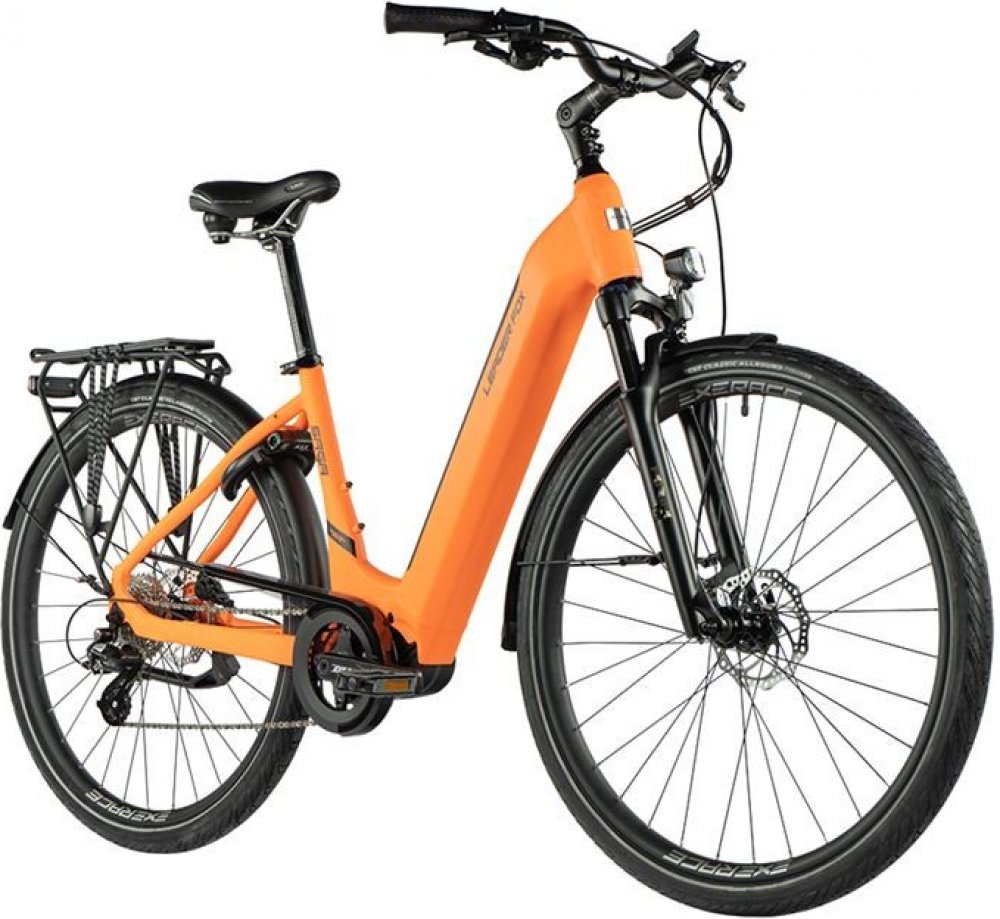 Novinka. Městské elektrokolo Leader Fox SAGA 28" s hliníkovým rámem, odpruženou přední vidlicí, kotoučovými brzdami. Oblíbené městské elektrokolo se snadným nastupováním.