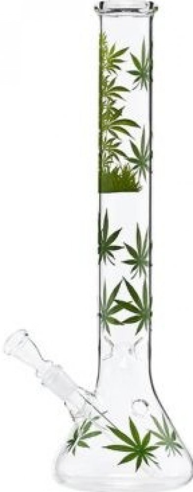 Atraktivní skleněný bong Leaf Jhari Beaker Ice. Transparentní rovný ice bong je zdobený zelenými listy konopí. Kvalitně zpracovaný bong je vybavený "výstupky" pro udržení kostek ledu, který ochlazuje kouř. Oproti standardním bongům je tento prémiový bong vyrobený z tepelně odolného borosilikátového skla. Chillum bongu je jednodílný. Výška: 45 cm Vnitřní průměr bongu: 4,2 cm Průměr hrdla: 5,6 cm Socket chillumu: 18,8 mm Sítko do bongu: 15 mm Materiál: sklo