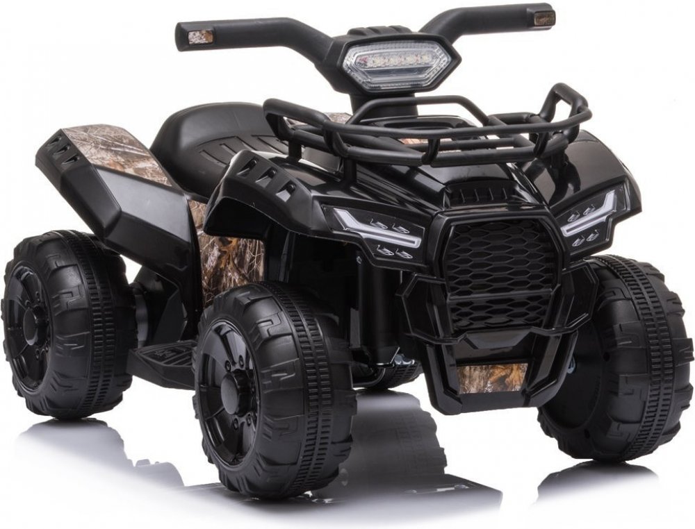 Tato černá elektrická čtyřkolka s atraktivními maskáčovými detaily je navržena pro první jízdní zážitky. Díky odolným plastovým a kovovým částem, širokým pneumatikám a stabilnímu podvozku zvládne i nerovnější povrchy na zahradě či na hřišti. Realistické prvky, jako jsou řídítka a přední maska s „světlomety“, podtrhují autentický vzhled.Čtyřkolka je skvělou volbou pro rozvoj motoriky a koordinace. Ovládání je intuitivní, montáž zabere přibližně 30 minut a produkt splňuje bezpečnostní normy CE. Díky kompaktním rozměrům a nízké hmotnosti se snadno přenáší i skladuje.Realistický design: věrné detaily a maskáčové panely pro nadšené malé jezdce.Stabilní jízda: velká profilovaná kola pro lepší přilnavost na různých površích.Pro nejmenší jezdce: doporučeno zhruba pro 1,5–3 roky pod dohledem dospělé osoby.Snadná montáž: složení přibližně do 30 minut.SpecifikaceTyp produktuDětská elektrická čtyřkolka (ride-on)Věk dítětePřibližně 1,5–3 roky (používat pod dohledem dospělého)ProvedeníČerné s maskáčovými detailyMateriálPlast a kovové prvkyKolaVelká profilovaná plastová kola pro lepší trakciNapájeníAkumulátor (elektrický pohon)BezpečnostCertifikace CEMontážOrientačně 30 minutRozměry balení69 × 44 × 31 cmHmotnost s balením6,8 kg