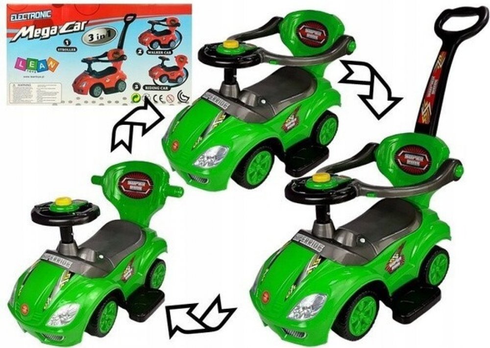 Odrážedlo 3v1 Mega Car Dětské odrážedlo s vodící tyčí Mega Car bylo navrženo pro energické batole, které miluje pobyt venku. Autíčko se pohybuje velmi jednoduchým způsobem – stačí, aby opatrovník tlačil rukojeť spojenou s vozidlem. Až dítě povyroste a vy upravíte konstrukci jeho odrážedla s vodící tyčí a změníte ho na odrážedlo, malý řidič převezme kontrolu nad svým autíčkem a bude se střídavě nohama odrážet od země. Dětské odrážedlo s vodící tyčí je fantastické usnadnění pro všechny rodiče, protože umožňuje víkendové procházky a výlety bez nutnosti brát s sebou kočárek.Vyberte si dětské odrážedlo s vodící tyčí, které se vyznačuje:- možností změny na jezdítko,- neutrální barevností,- nízkou hmotností,- pískátkem na volantu,- úložným prostorem pod sedadlem,- bezpečnou konstrukcí a tvarem bez ostrých hran.Dětské mini vozidlo bylo navrženo s důrazem na nejmenší detail, což významně ovlivňuje pozitivní pocity mladého řidiče. Pevná, ale lehká a jednoduchá konstrukce zaručuje skvělou zábavu po dlouhá léta. Aerodynamický tvar sportovního autíčka a výroba s použitím materiálů nejvyšší kvality zvyšuje jeho odolnost proti poškození, ke kterému může dojít během bláznivé zábavy.Využití tohoto vozítka při každodenní hře má obrovský vliv na vývoj dítěte. Odrážedlo 3v1 podporuje koordinaci mnoha částí těla dítěte současně, rozvíjí také svaly a, což je stejně důležité – podporuje učení se samostatné, stabilní chůzi. Jízda v mini autíčku umožní dítěti pochopit, co je rychlost, vzdálenost nebo směr.Sada se skládá z plastové karoserie auta, odrážedla, stupaček, ochranných zábran, kol, otočného volantu, opěrky, zadní podpěry, osy a ozdobných krytů kol. Obrovskou výhodou autíčka je možnost jeho snadné přeměny z odstrkovadla na jezdítko – stačí odepnout stupačky, zábrany a odstrkovadlo a batole může jezdit samo. Sedadlo hračky je zvedací – prostor pod ním lze využít mimo jiné k uložení oblíbené hračky vašeho děťátka nebo oblečení na převlečení. Tlačítko uprostřed volantu je pískátko.Výrobek je určen pro děti starší 2 let – mohou jej používat všechny děti, jejichž hmotnost nepřesahuje 50 kg. drobné prvky. Návod přiložený k dětskému jezdítku výrazně usnadňuje samostatné sestavení autíčka. Výrobek má certifikát CE, k jeho výrobě byly použity pro děti bezpečné plasty.Rozměry odrážedla:Výška (s odstrkovadlem) – 85 cmŠířka – 40 cmDélka – 60 cmRozměry balení: 62,5 x 30 x 35,5 cmHmotnost: 3,95 kg