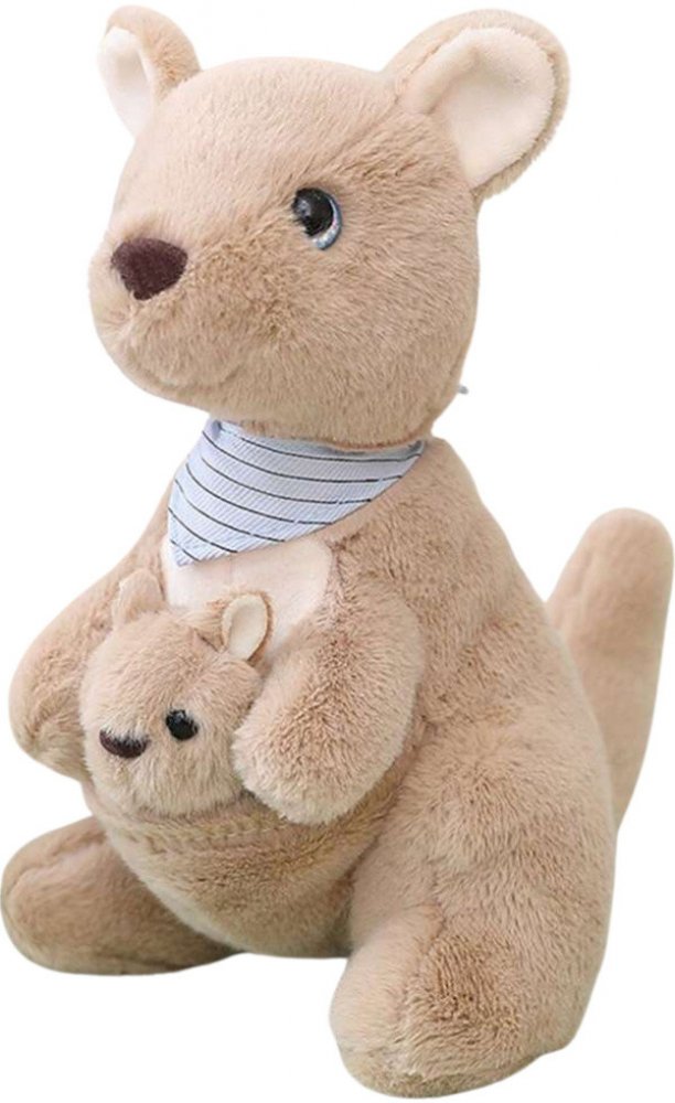 Roztomilá plyšová hračka klokan s mládětem v kapse okouzlí svým vzhledem a kvalitou provedení. Vyrobena z mimořádně měkkého a příjemného materiálu v béžové, s charakteristickým šátkem na krku a v kapse s mládětem, díky čemuž vyniká mezi ostatními hračkami.Plyšový klokan s mládětem je bezpečná a lehká hračka, určená pro nejmenší uživatele. Podporuje emoční vývoj dítěte, učí jej péči a rozvíjí fantazii. Díky realistickému tvaru může pomoci při výuce o divokých zvířatech a prostředí Austrálie. Funguje jako mazlík, společník při hrách a dekorace dětského pokoje. Je to také skvělý nápad na dárek.SpecifikaceCelkové rozměry:cca 22 x 23 x 13 cmMateriál:měkký plyš, výplň z polyesterového vláknaBarva:béžová s přídavkyBezpečnost:certifikát CE