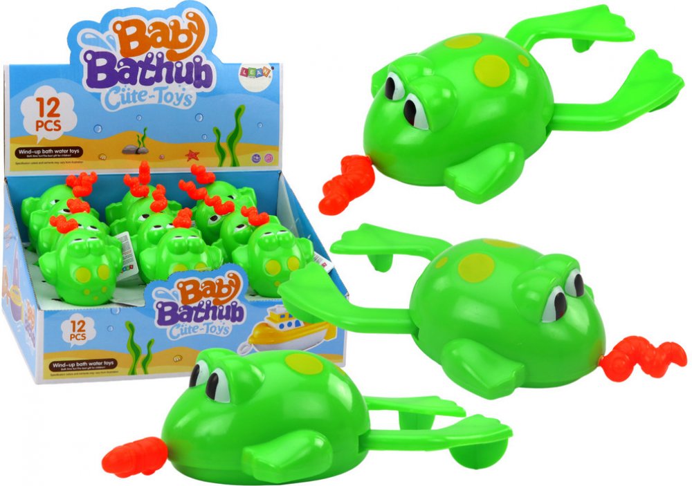 Roztomilá koupací hračka v podobě zelené žáby promění každé koupání v zábavu. Díky nakrucovacímu mechanismu a dlouhému jazyku se žabka po vodě sama pohybuje, což děti baví a zároveň rozvíjí jejich zvědavost. Plovoucí žába do vody, nakrucovací pohyb a bezpečné provedení pro děti od 3 let.Tato malá, ale šikovná koupací žabka je navržena pro radostné hraní ve vaně. Stačí natáhnout její dlouhý stočený jazyk a žabka se začne vesele pohybovat po hladině. Interaktivní pohyb podporuje zábavu i učení se formou hry.Žabka je skvělým společníkem pro rozvoj dětské fantazie a poznávání. Pomáhá dětem chápat pohyb ve vodě a jednoduché principy fyziky, a současně zpříjemňuje čas koupání.Zábavný nakrucovací mechanismus – žabka se sama pohybuje po voděPřátelský design – bezpečné a lákavé provedení pro dětiUčení hrou – podpora zvídavosti a motorikyIdeální do vany i bazénkuCertifikace CE a shoda s EN71SpecifikaceTypKoupací hračka – plovoucí žábaMechanismusNakrucovací (pohyb po vodě po natažení jazyka)BarvaZelenáRozměry hračky17 × 10,5 × 4,5 cmRozměry balení32 × 25 × 13 cmCertifikaceCENormaEN71Věk3+ rokyBaleníV balení po 12 ks (prodáváno po 1 ks)