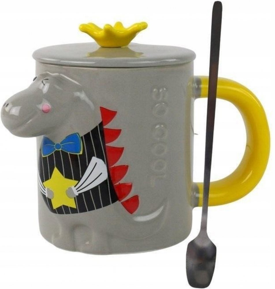 Součástí hrnku je dlouhá lžička, což usnadňuje míchání nápojů nebo přidávání cukru nebo mléka. Lžička může být také dekorativním prvkem, který odpovídá motivu dinosaura.