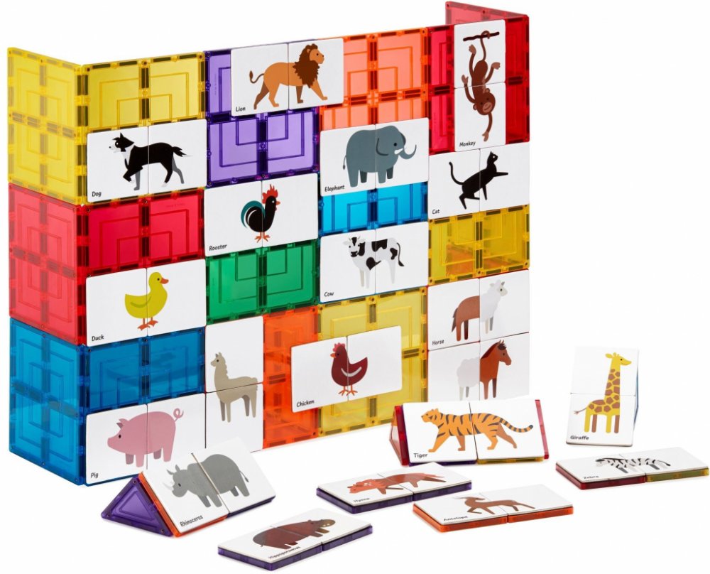 - specilné navržené magnetické dlaždice s obrázky zvířat, které jsou vhodné na magnetické stavebnice