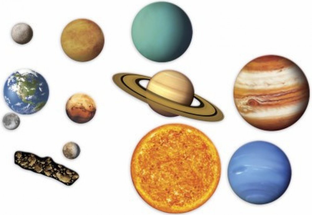 Sada obsahuje 8 planet, Pluto (trpasličí planeta), Slunce, Měsíc, pás asteroidů, manuál.