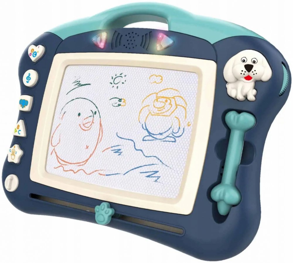 Sada navíc obsahuje pohodlný propiska a razítko ve tvaru pejska, které dílo zpestří. Navíc 5 multifunkčních tlačítek: tlačítko písní, melodií, zvířat, písmen a konverzí. Při vydávání zvuků svítí tabule a upoutá pozornost dítěte. Tabule má pohodlnou rukojeť, takže si ji dítě může vzít kamkoli a má možnost vystavování nožiček, což usnadňuje psaní u stolu dítěti. Zmizení rozvine u dítěte manuální zručnost, představivost, kreativitu a poskytne šanci rozvinout uměleckou stránku dítěte!