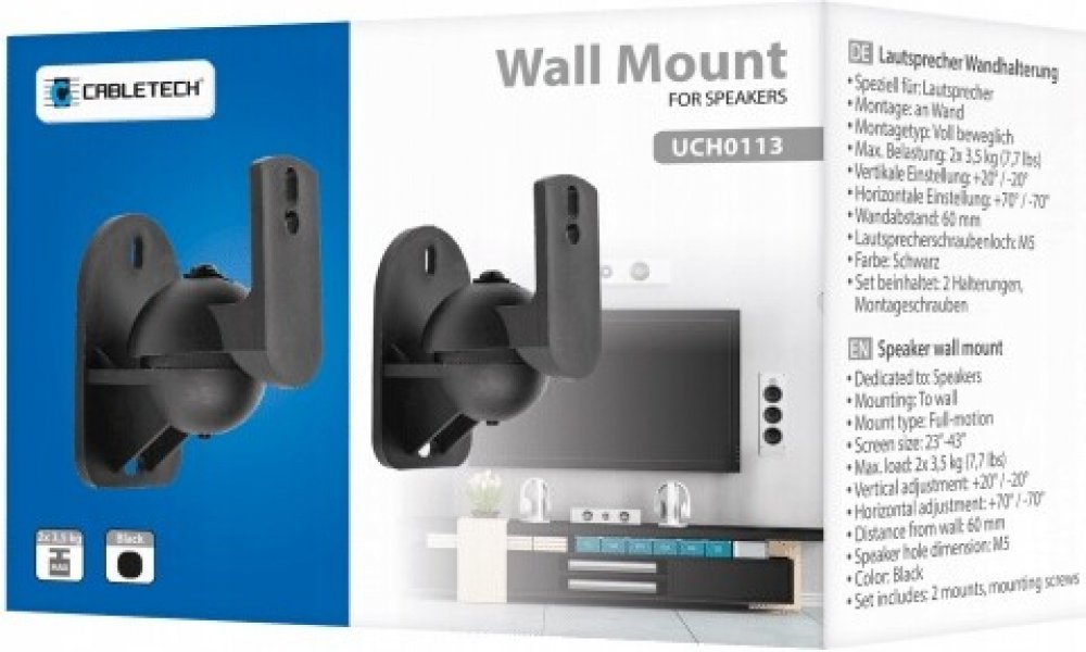 Cabletech držáky nástěnné 3.5 kg plastové černé