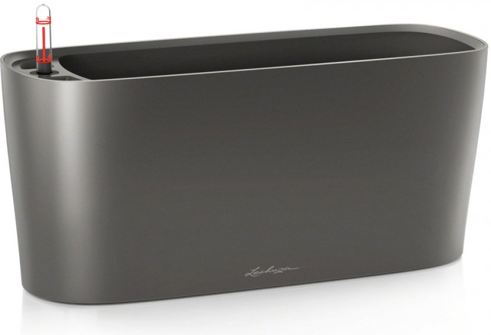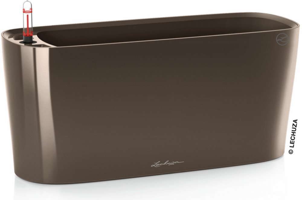 Květináče a truhlíky Leschuza Delta pozvedají styl všude, kam je postavíte. Svým designem jsou přímo ideální pro úzké a dlouhé plochy, kam se Vám jiný květináč či truhlík nevejde. Svou velikostí a balením jsou květináče a truhlíky ideálním tipem na dárek k obdarování vašich blízkých. Do truhlíku Delta zasaďte 3 ks malých rostlin Olea europaea (olivovníku evropského). Substrát okolo rostlin obložte mechem nebo kamínky a vypěstuje si svůj vlastní olivovníkový mini háj - ukázkovou bonsajovou zahrádku. Při dobré zálivce oliva snese i plné letní slunce a je tedy vhodná na všechny jižní expozice. Možná se pak dočkáte i svých vlastních plodů! Je jedno zda jste pryč několik dní nebo přes den prostě nemáte čas na náročnou péči o rostliny. Květináče Lechuza zastanou práci za vás. Vaše rostliny jsou zabezpečeny na 2-12 týdnů, podle velikosti zásobníku a to zásobou vody i výživných látek, které potřebují k ideálnímu růstu. S doplněným zásobníkem se rostlina postará sama o sebe bez vašeho zásahu. Kdy je potřeba zásobník opět doplnit vodou a případně tekutým hnojivem, vám spolehlivě ukáže zabudovaná měrka stavu vody. Květináče jsou vyrobeny ze stabilní umělé hmoty, která nepraskne ani tehdy, když se květináč převrhne. Ušlechtilý keramický a kovově efektní lesk je neměnný po mnoho let a odolný vůči UV záření.