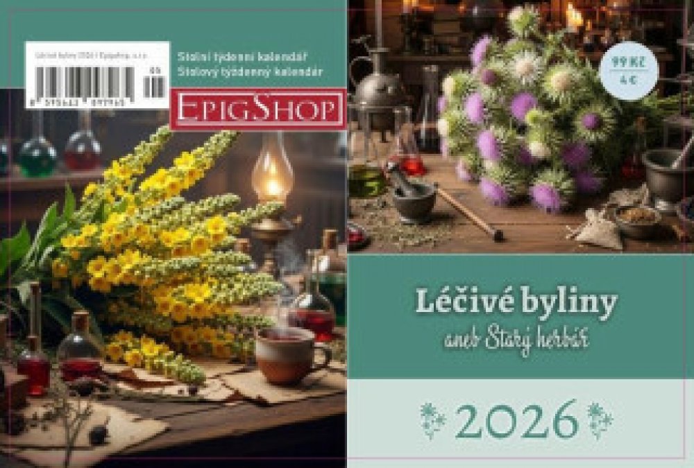 Kalendář 2026 Léčivé byliny aneb starý herbář - stolní, týdenní Objevte svět léčivých bylin s kalendářem Léčivé byliny aneb Starý herbář. Najdete v něm nádherné obrázky nejznámějších bylinek, doplněné o stručné a výstižné popisky. Tento kalendář je ideální pro každého, kdo se chce seznámit s tradiční moudrostí bylinkářství. z kategorie Papírnictví | Kalendáře, Diáře | Diáře | Týdenní | Ostatní for...