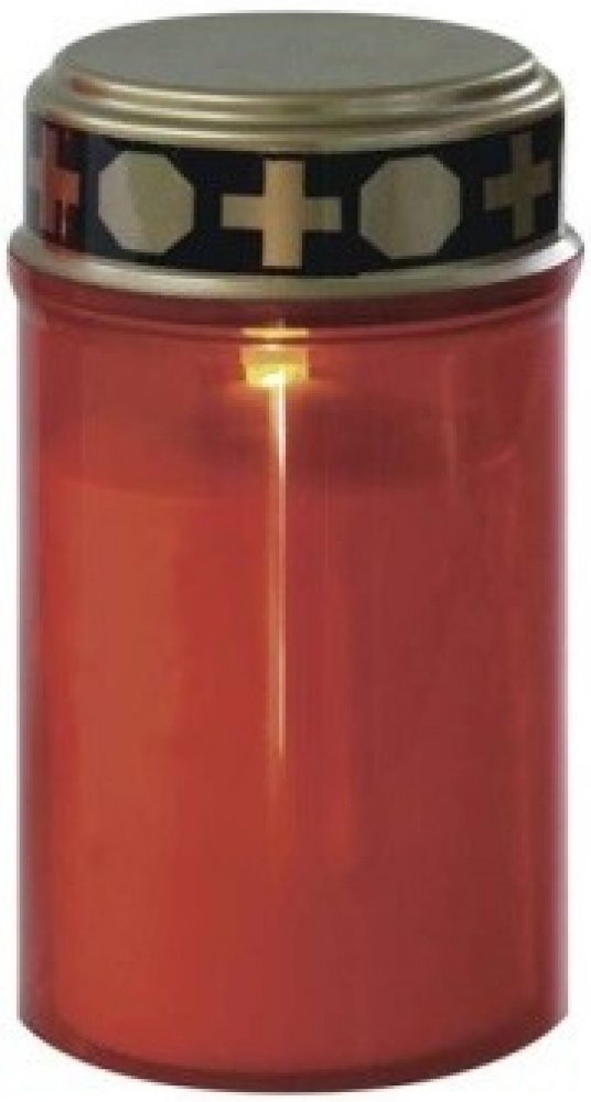 LED hřbitovní svíčka červená, 2x C, venkovní i vnitřní, teplá bílá, senzor. Plápolající jako pravá svíčka