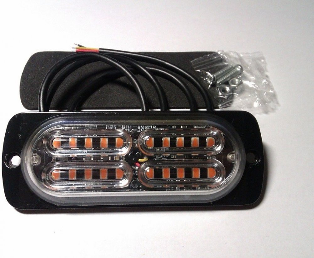 LED stroboskop, maják s SMD 3030 diodami, vysoká svítivost výkon 5W, 18 frekvencí blikání, pamatuje si poslední frekvenci hliníková deska, voděodolnost IP67 balení obsahuje 1 LED stroboskop, šrouby k uchycení, podložku pro napětí 12V a 24V rozměr: 112x41x11mm nemají synchronizaci