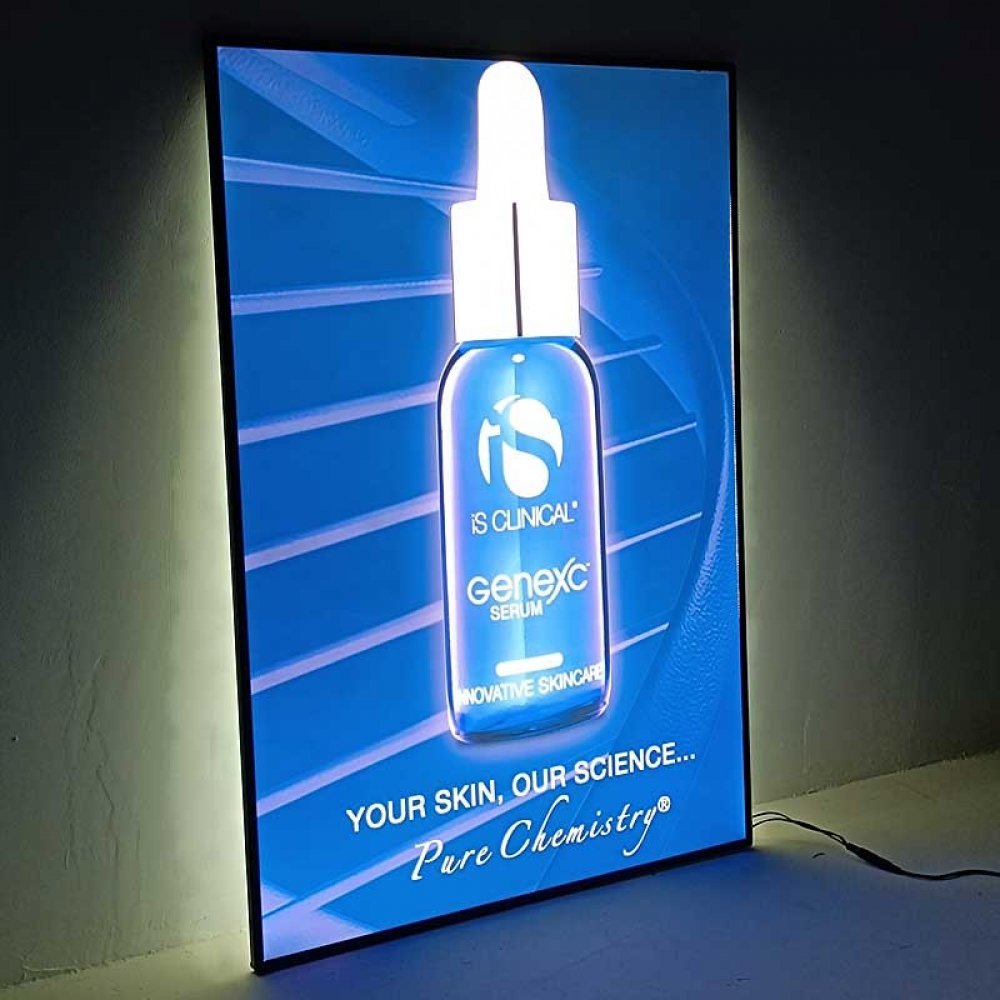 - Lightbox je zavěšen na tenká lanka, což umožňuje prezentaci reklamy přímo ve výloze.