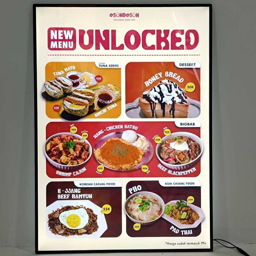 - Lightbox je zavěšen na tenká lanka, což umožňuje prezentaci reklamy přímo ve výloze.