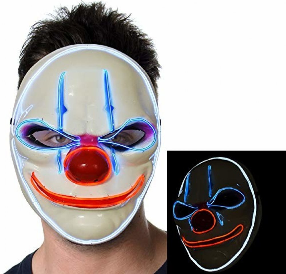LED svítící masky na obličej - Klaun, které vyniknou nejlépe na halloween, karnevalu, diskotéce, v klubu, na party či festivalu je to pravou investicí pro tebe pokud chceš zaujmout a hlavně být cool.