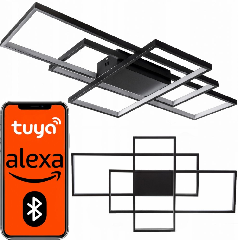 Stmívatelné stropní svítidlo ovládané dálkovým ovladačem, aplikací TUYA SMART a AMAZON ALEXA Tato moderní lampa geometrického tvaru je interiérovou dekorací. Univerzální a nadčasový charakter lampy se hodí do každého typu místnosti, ať už jde o domácnosti, kavárny, kanceláře nebo hotely. Kolekce svítidel vyrobená z vysoce kvalitních materiálů. Napájecí napětí: 175-265V AC CCD - BEZ BLIKACÍHO EFEKTUMaximální spotřeba energie: integrované LED diody s celkovým výkonem 178WVestavěná technologie Bluetooth,Ovládání prostřednictvím aplikace Tuya SMART, Amazon AlexaBezplatné dálkové ovládání na vzdálenost 0,5-1mSvětelný tok lampy (max.): 14240lmBarva světla: teplá, neutrální, studenáCRI [Ra]: >80Třída ochrany: 1: OCHRANA: IP20 Moderní, univerzální tvar vhodný do každé místnosti Pečlivé zpracování svítidel, práškově lakované díly Možnost ovládání pomocí aplikace Možnost změny barvy světla pomocí aplikace Nastavitelný světelný výkonRozsah ovládání dálkového ovladače je dán tím, že ovladač je uzavřen uvnitř lampy, aby byl neviditelný.Svítidlo se ovládá pomocí aplikace a nástěnného vypínače