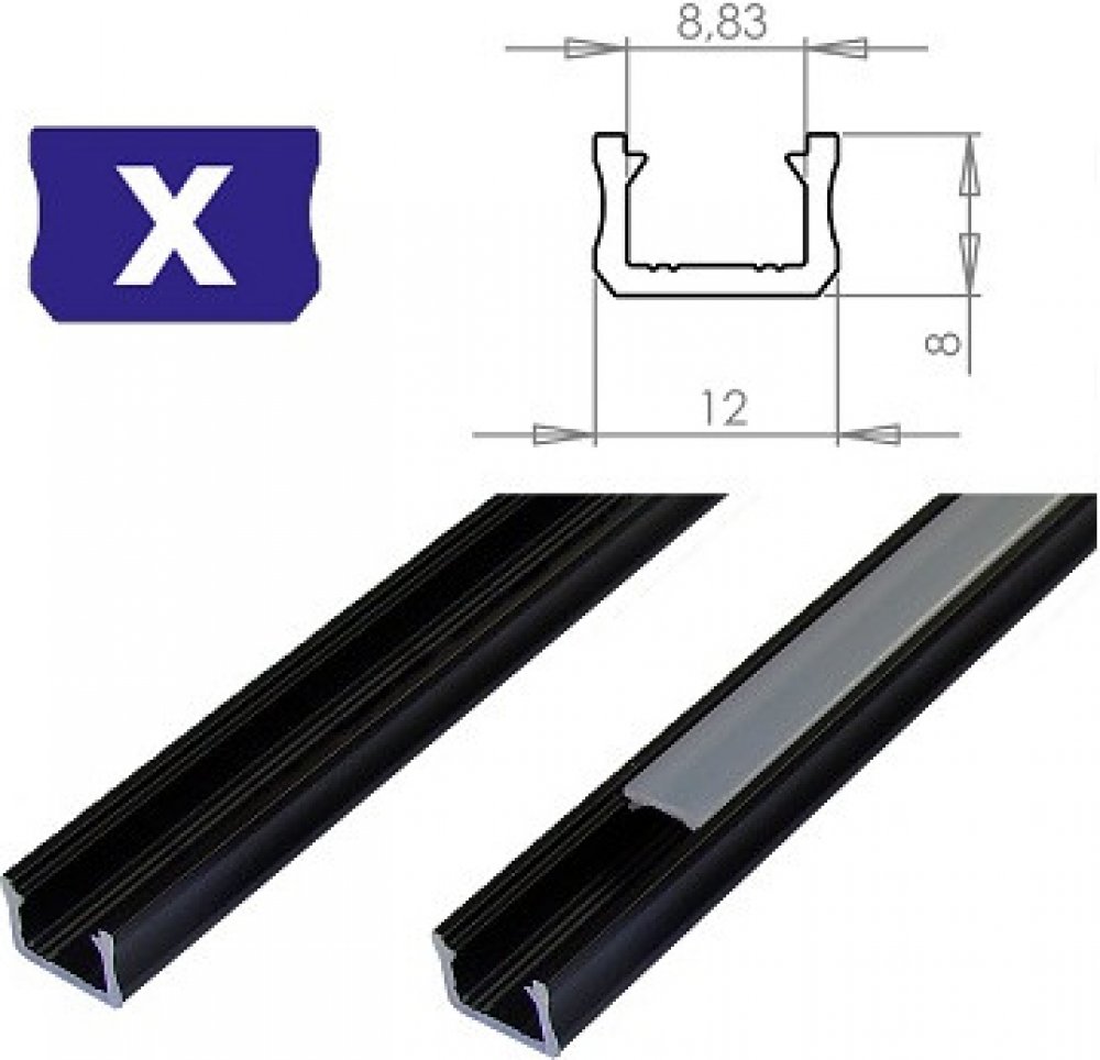 Popis produktu Získání úzké linie světla díky použití X profilu není jedinou výhodou tohoto produktu. Jeho minimalistický design umožňuje instalaci v místech, kde není velký výběr ohledně použití vhodného osvětlení. Nízká výška tohoto profilu a plochý kryt (nalisovaný shora) působí dojmem velmi decentního svítidla pro LED pásky a pásky. Ideální pro dekorativní osvětlení nábytku a interiérů. Použití profilu X zaručuje extrémně úzký a příjemný světelný paprsek. Barevné varianty: - přísný, - eloxované stříbro, - eloxovaná černá, - eloxovaná nerezová ocel, - lakovaná bílá (RAL9016) Způsob montáže: - zatlačením do vyfrézovaného otvoru nebo pomocí montážního lepidla či montážní pásky. Příslušenství: - SLIM PVC stínidlo - mléčné, matné, průhledné, - SLIM PMMA stínidlo - mléčné, matné, průhledné, mléčně mrazivé, černé, LENS 15 (nasunutí shora) - vyhrazené krytky v 5 barvách (s dírou, bez dírky) DOPLŇKOVÉ PŘÍSLUŠENSTVÍ: - držák X MINI, - kovová X rukojeť, - závěs Profily dostupné v sekcích: 1000 mm, 2020 mm, 3000 mm. Možnost dokoupení delších úseků po kontaktování servisní kanceláře. Pokyny pro instalaci profilu X se SLIM krytem pomocí (1) oboustranné pásky, (2) montážní konzoly X, (3) kovové montážní konzoly X Konečný výsledek montáže X profilu se SLIM krytem pomocí (1) oboustranné pásky (2) X montážní konzoly, (3) X kovové montážní konzoly Dekorativní efekt instalace X profilu za hranu zrcadla Spojení X profilů se stínidlem SLIM pod úhlem 90° Montážní schéma prvků osvětlovací soustavy pomocí profilu X a (1) SLIM stínidla, (2) LED pásek, (3) krytka s otvorem, (3a) krytka bez otvoru, (4) montážní šroub, (5) X montážní konzole