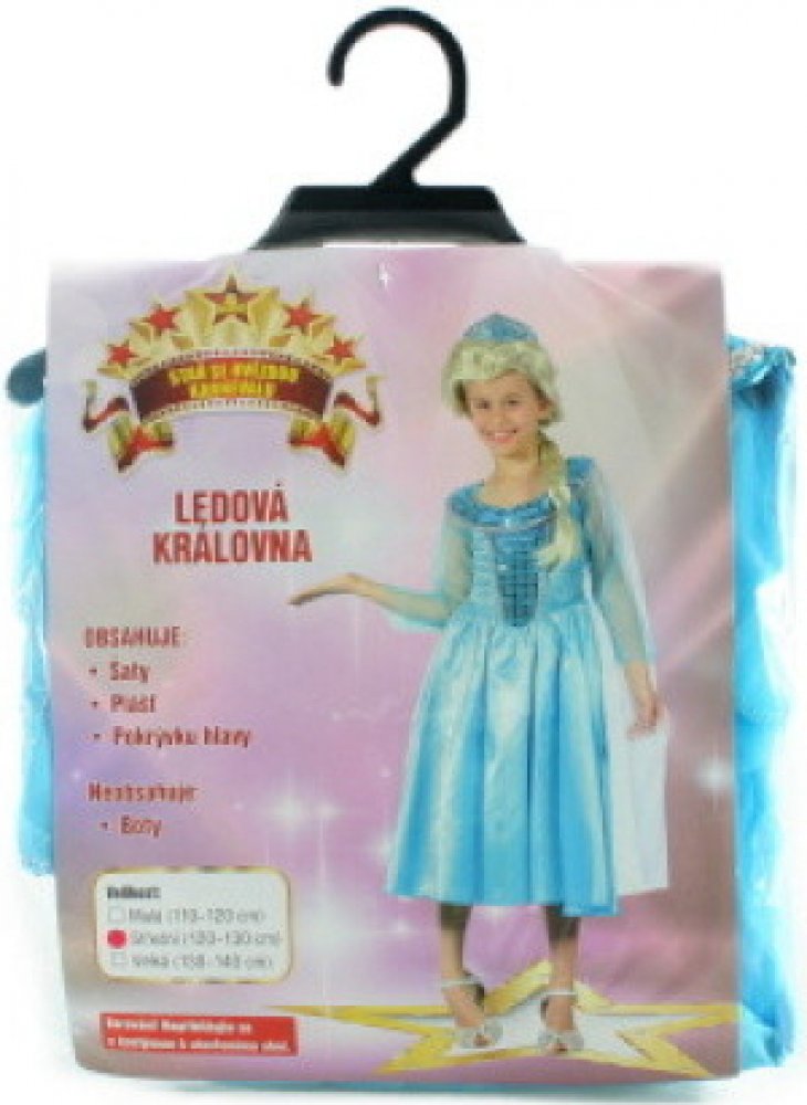 Chystáte se s dítětem na karneval, dětskou párty nebo na významnou kostýmovou událost ve škole či školce Potom je na místě důkladný výběr vhodného kostýmu. Zkuste se zamyslet, jaký konkrétní převlek vystihne dětskou osobnost, významnou vlastnost, jaký kostým vašemu dítěti bude nejvíce slušet. Bude to kostým komiksového hrdiny, pohádkový kostým, převlek znázorňující nějaké povolání anebo krásné šaty pro princeznu Při výběru kostýmů a tvorbě případných doplňku zažijete s dítětem spoustu zábavy. Odměnou vám i vašemu dítěti bude radost a spousta zážitků. Staňte se společně hvězdou karnevalu. Karnevalový kostým - Ledová princezna. Velikost: Malá (110 - 120 cm). Kostým je vhodný pro holky ve věku 4-6 let. Balení obsahuje: - šaty - plášť - diadém. Neobsahuje: - boty.