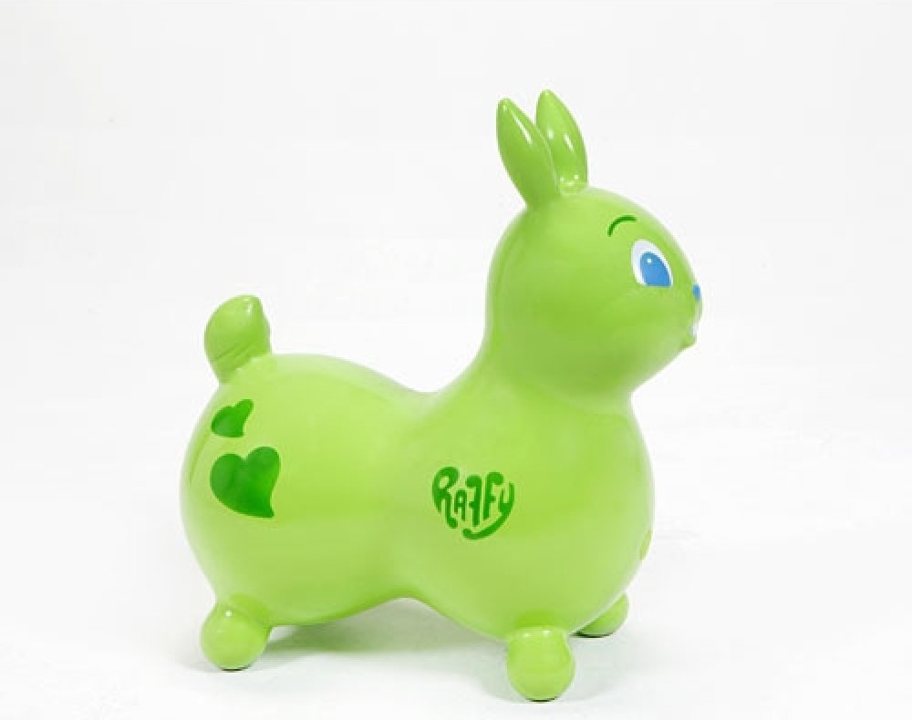 Nafukovací králíček Raffy má stejné vlastnosti jako oblíbený koník Rody a rozšiřuje rodinu našich nafukovacích zvířátek k hopsání. Nejenže zaujme jako zábavná a aktivní hračka, ale také podporuje rovnováhu, motorické dovednosti a koordinaci dítěte. Díky odnímatelným základnám (nejsou součástí balení) lze Raffy proměnit na houpacího králíčka nebo na králíčka na kolečkách.