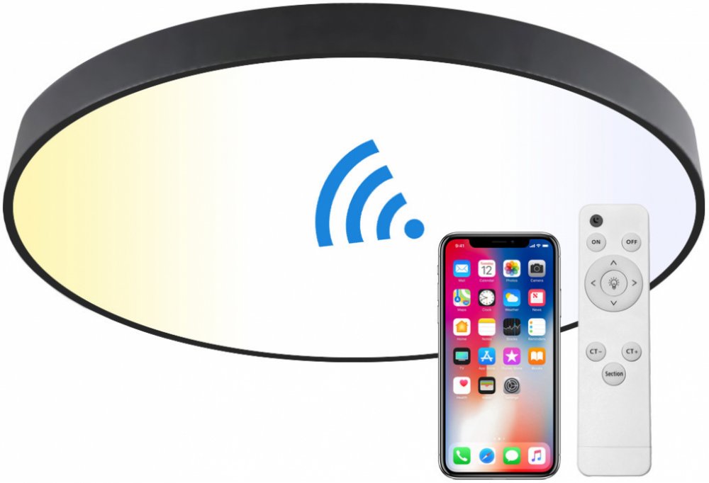 Doprava zdarma. Výkon LED 24W. Chromatičnost 2700-6000K. Barva těla Černá. Světelný tok 2040lm. Napětí 230V AC. Stupeň krytí IP20 - Vnitřní - vhodné do interiéru. Vyzařovací úhel 120°. Ekvivalentní příkon 6 až 12 m2, Účinnost zdroje > 90 %, Životnost až 50 000h, Třída spotřeby G, Počet spínacích cyklů > 80 000, Zahřívací doba < 0,1 s, Pracovní teplota od -30°C do +50°C, Materiál plech / PC, Certif...