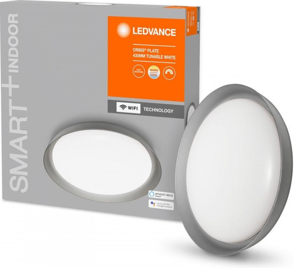 Orbis Plate LED stropní svítidlo v kulatém designu s laditelnou bílou a technologií LEDVANCE SMART+ WiFi Stropní svítidlo Orbis Plate LED vyrobené z plastu PMMA je vybaveno bílým difuzorem ve tvaru čočky, který je připevněn k deskové stropní konzole. Díky laditelné bílé a plynulé stmívatelnosti reprodukuje stropní světlo řadu světelných nálad. Ovládá se pomocí aplikace na smartphonu / tabletu nebo hlasovým příkazem. Díky technologii LEDVANCE SMART+ WiFi je deska Orbis integrována přímo přes WLAN bez nutnosti dalšího hardwaru. Technické údaje / kompatibilita: - ovladatelné pomocí aplikace LEDVANCE SMART+ WiFi (k dispozici zdarma pro iOS a Android ); umožňuje předvolby a automatizace - Je možné ovládání pomocí Google Assistant nebo Amazon Alexa - stmívatelné - teplota sv?tla: 3 000 K až 6 500 K. - Rádiový protokol: WiFi 2,412 - 2,484 GHz Nové výrobky LEDVANCE, dříve známé pod značkou OSRAM, kombinují nejvyšší standardy kvality s moderním designem.