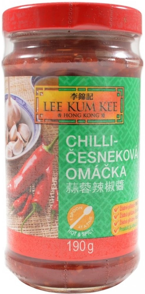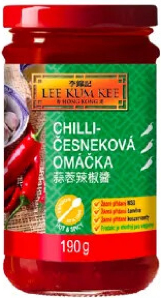 Lee Kum Kee Chilli omáčka česneková 190 g. Pikantní omáčka z chilli papriček a česneku, která dodá pokrmům intenzivní chuť a příjemnou pálivost. Skvělá pro milovníky asijské kuchyně. Použití : Skvělé pro dochucení stir-fry pokrmů, nudlí a polévek. Ideální k marinování masa nebo jako dip k asijským pokrmům.